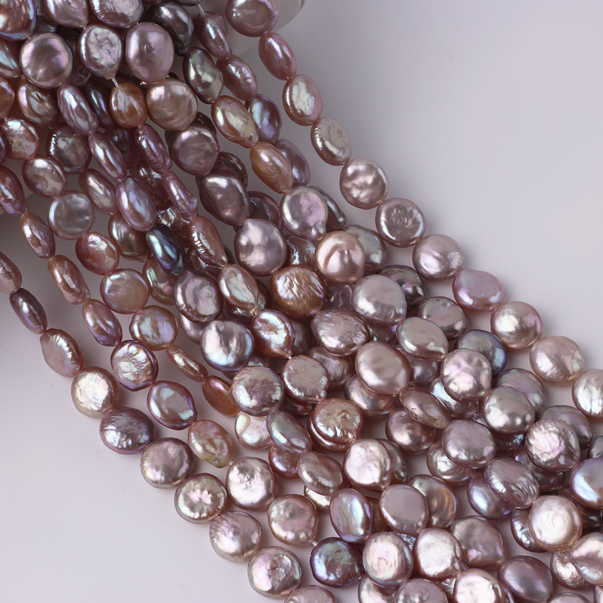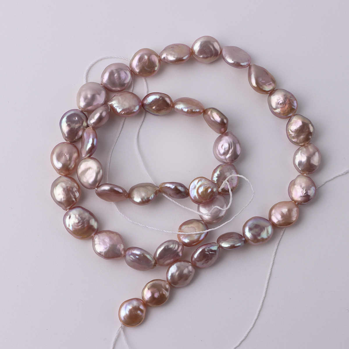 Button kultivierte Süßwasserperlen, Natürliche kultivierte Süßwasserperlen, Barock, DIY, lila pink, About:8-9mm, Länge:40 cm, verkauft von Strang