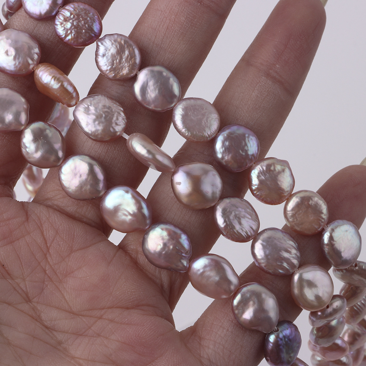 Button kultivierte Süßwasserperlen, Natürliche kultivierte Süßwasserperlen, Knopf, natürlich, weiß, 12-13mm, Bohrung:ca. 0.8mm, Länge:15 ZollInch, verkauft von Strang