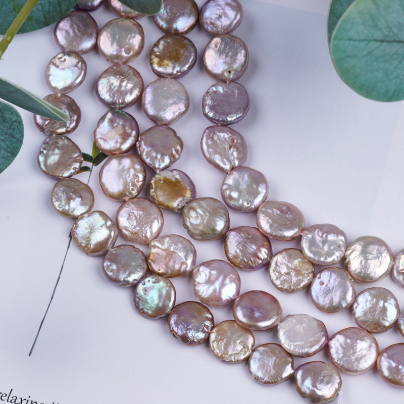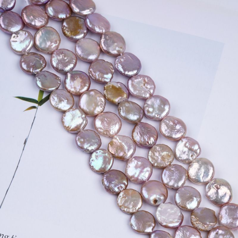 Button kultivierte Süßwasserperlen, Natürliche kultivierte Süßwasserperlen, Knopf, DIY, violett, about:13-14mm, Länge:18 cm, verkauft von Strang