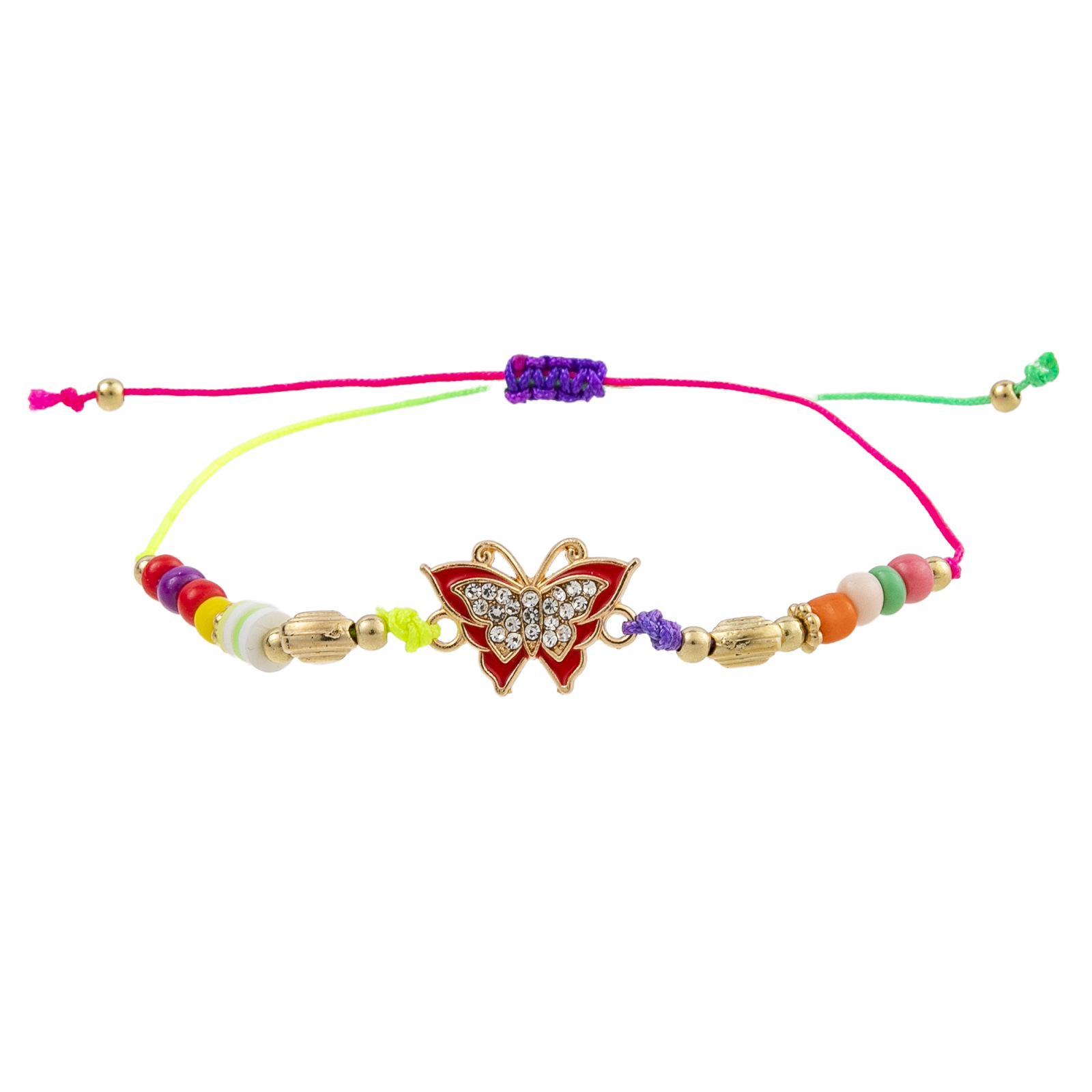Glas Samen Armbänder, Zinklegierung, mit Knotenschnur & Seedbead, Schmetterling, plattiert, Einstellbar & für Frau & Emaille & mit Strass, gemischte Farben, Länge:28 cm, verkauft von setzen