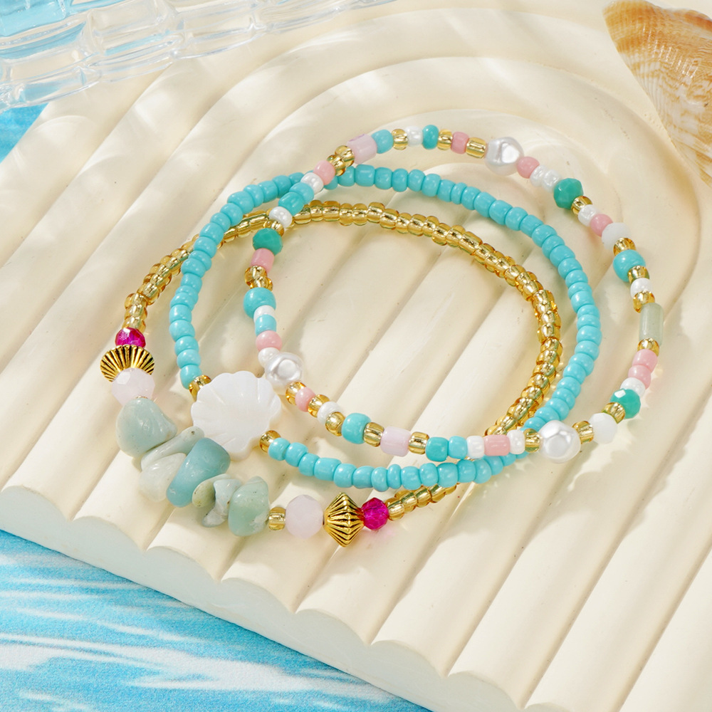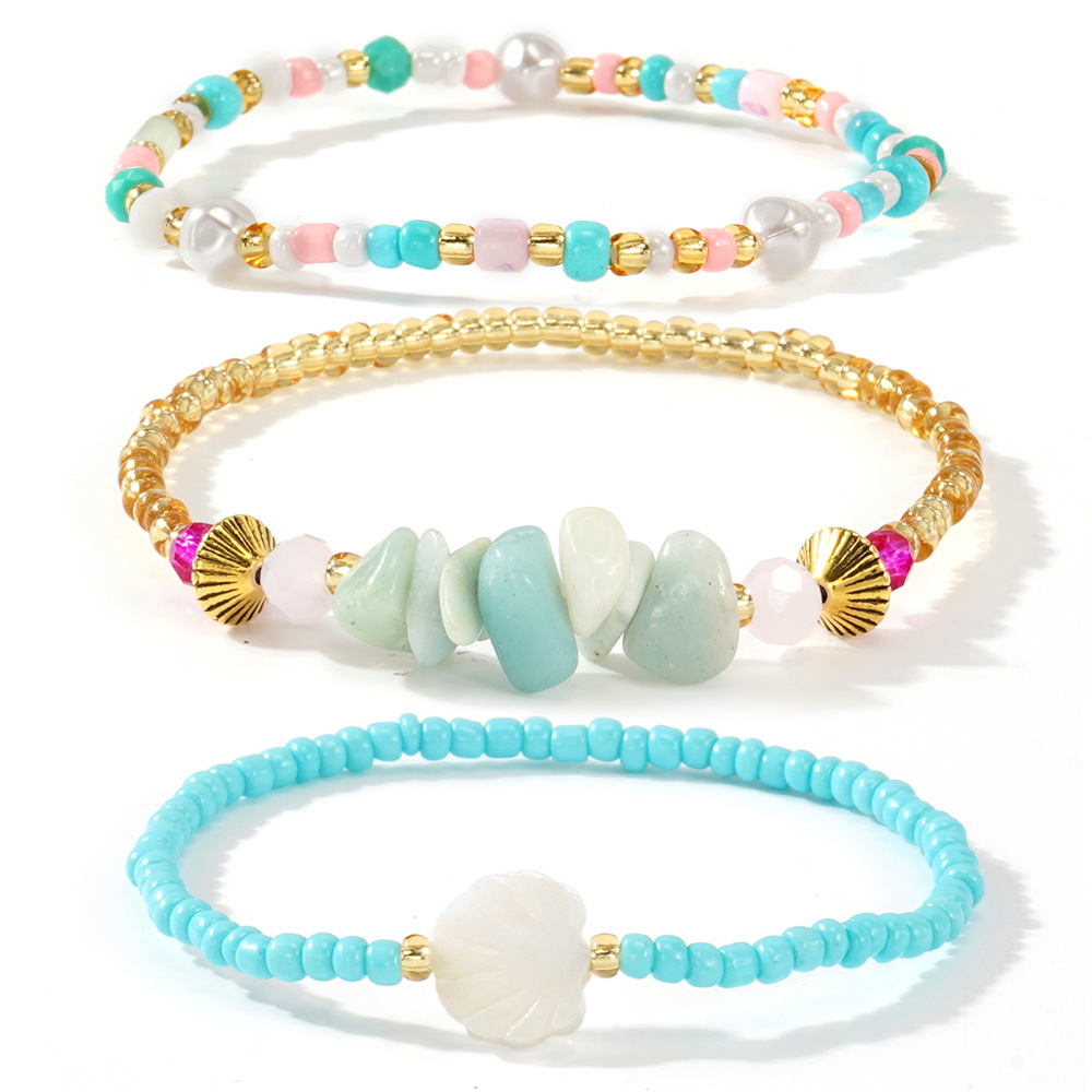 Glas Samen Armbänder, Seedbead, mit Edelstein & 304 Edelstahl, drei Stücke & Modeschmuck, keine, verkauft von setzen