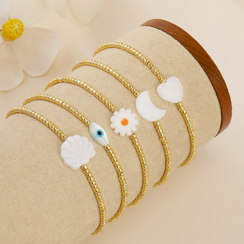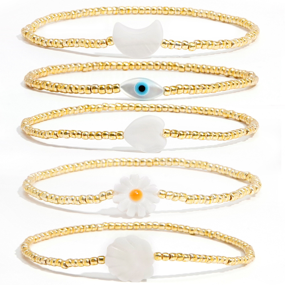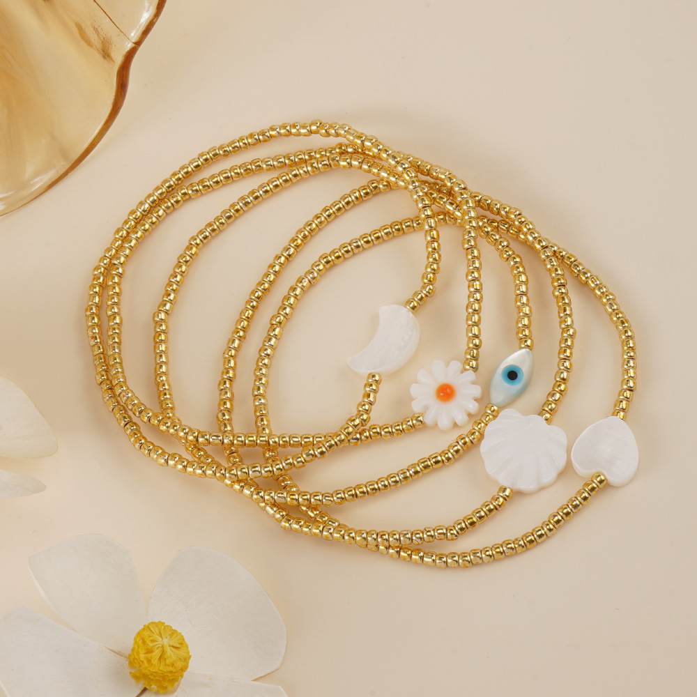 Glas Samen Armbänder, Seedbead, mit Lampwork, 5 Stück & Modeschmuck, gemischte Farben, verkauft von setzen