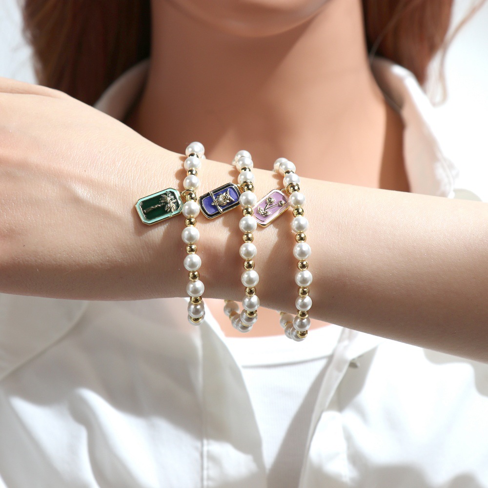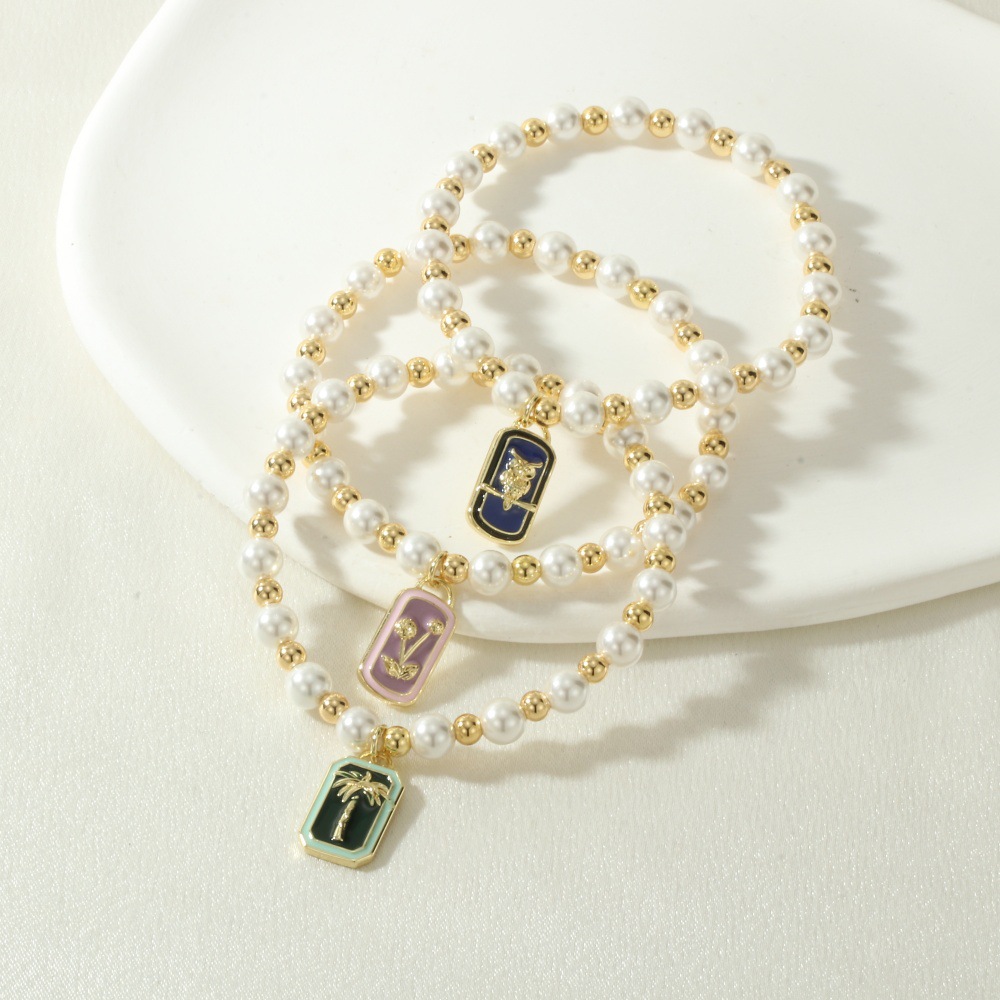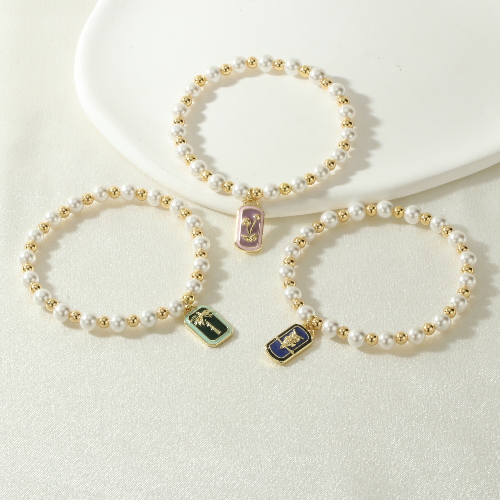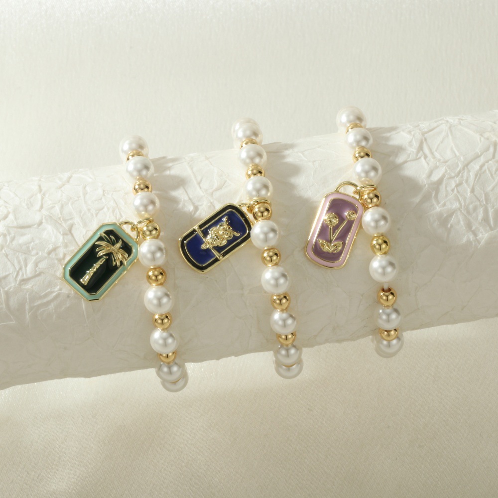 Emaille-Messing-Armbänder, Messing, mit Muschelkern, Rechteck, goldfarben plattiert, verschiedene Muster für Wahl, keine, Länge:16-17 cm, verkauft von PC