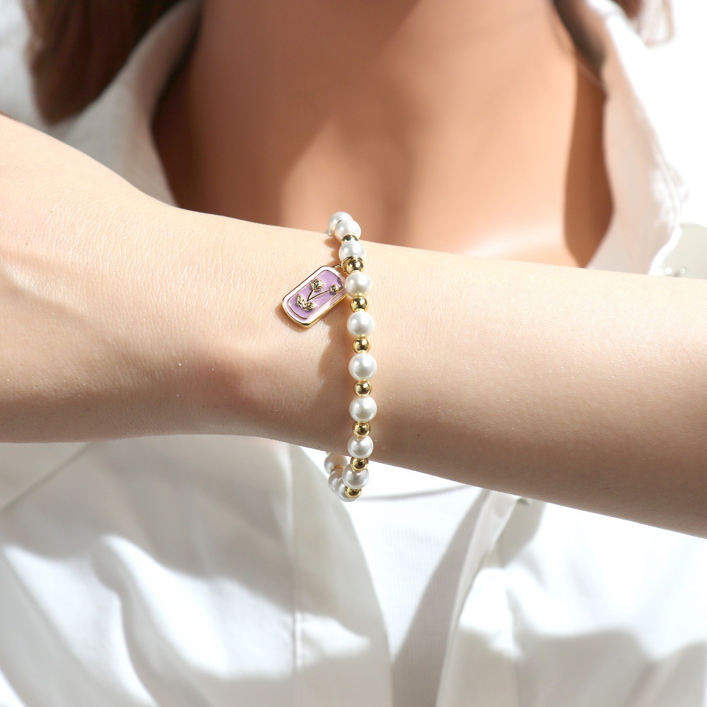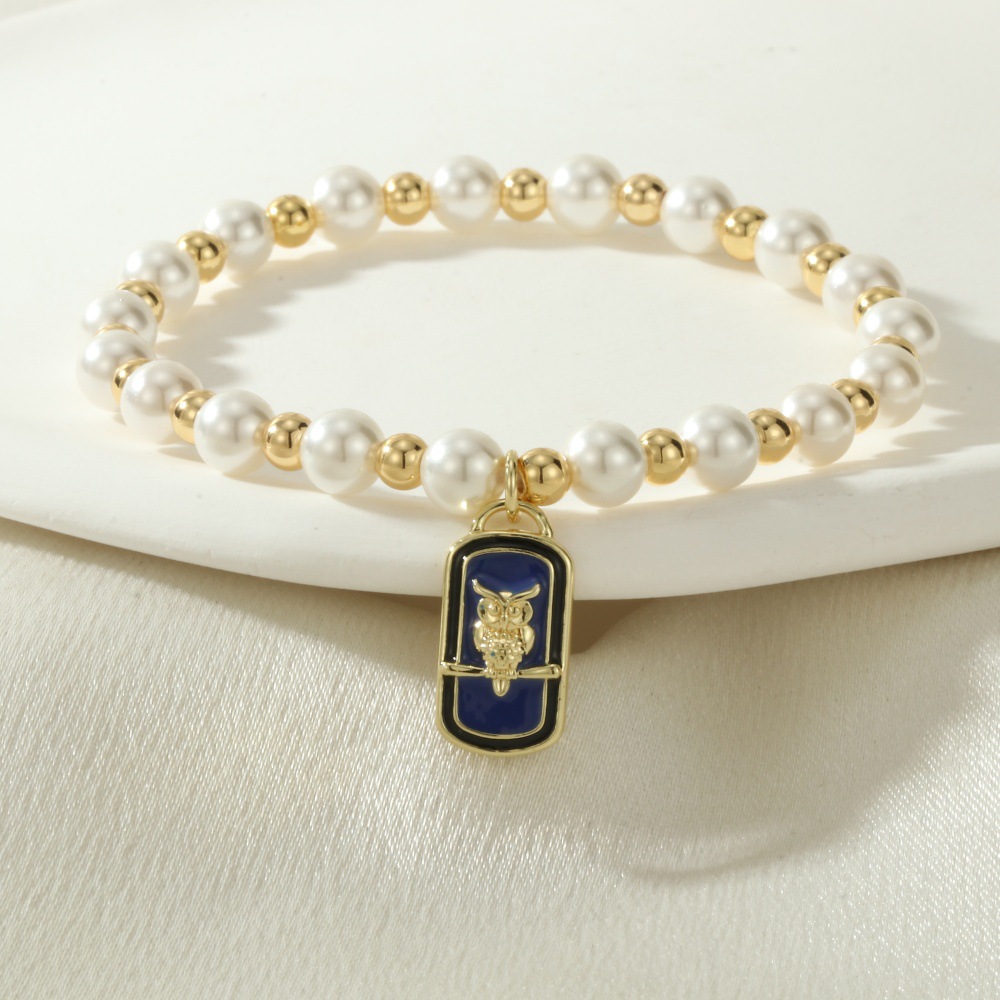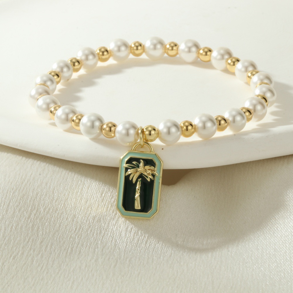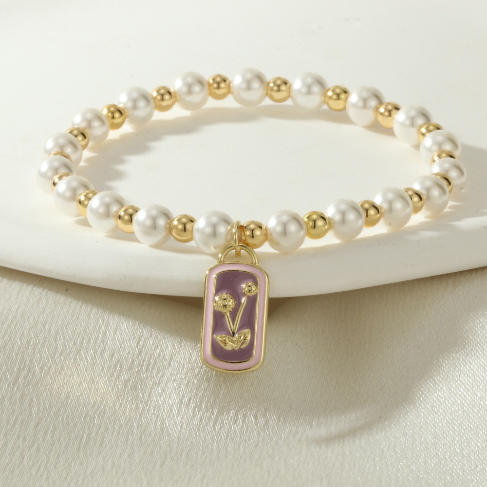 Emaille-Messing-Armbänder, Messing, mit Muschelkern, Rechteck, goldfarben plattiert, verschiedene Muster für Wahl, keine, Länge:16-17 cm, verkauft von PC