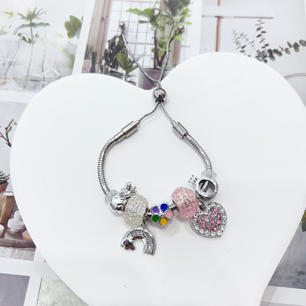 316 Edelstahl European Armband, Blume, originale Farbe, 15x12.5x12mm, Länge:ca. 7.5 ZollInch, verkauft von Strang