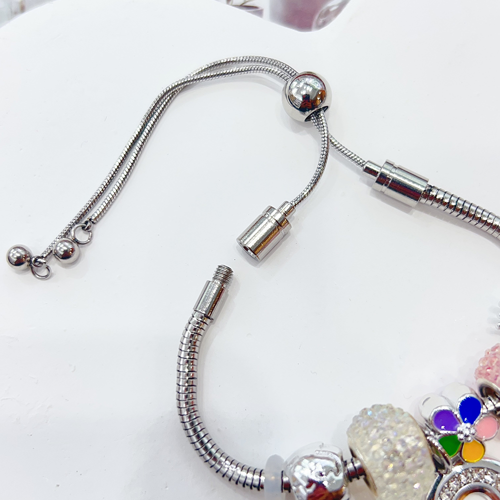 Edelstahl Europa Armbänder, Zinklegierung, mit 304 Edelstahl Kette & Harz, Einstellbar & Modeschmuck & für Frau, Platin Farbe, Länge:ca. 16-26 cm, verkauft von PC