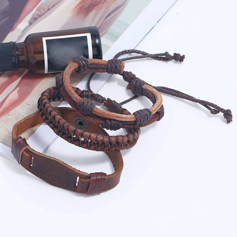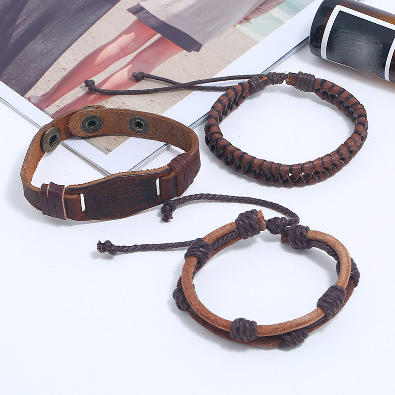 Rindsleder-Armbänder, Kuhhaut, mit Hanfgarn & PU Leder, handgemacht, drei Stücke & Modeschmuck & für den Menschen, Diameter: about 6cm., verkauft von setzen