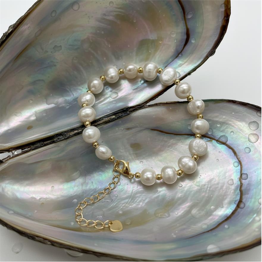 Zink Legierung Perlen Armbänder, Natürliche kultivierte Süßwasserperlen, Perlen Armband, 8-9mm, Länge:7.1 ZollInch, verkauft von Strang