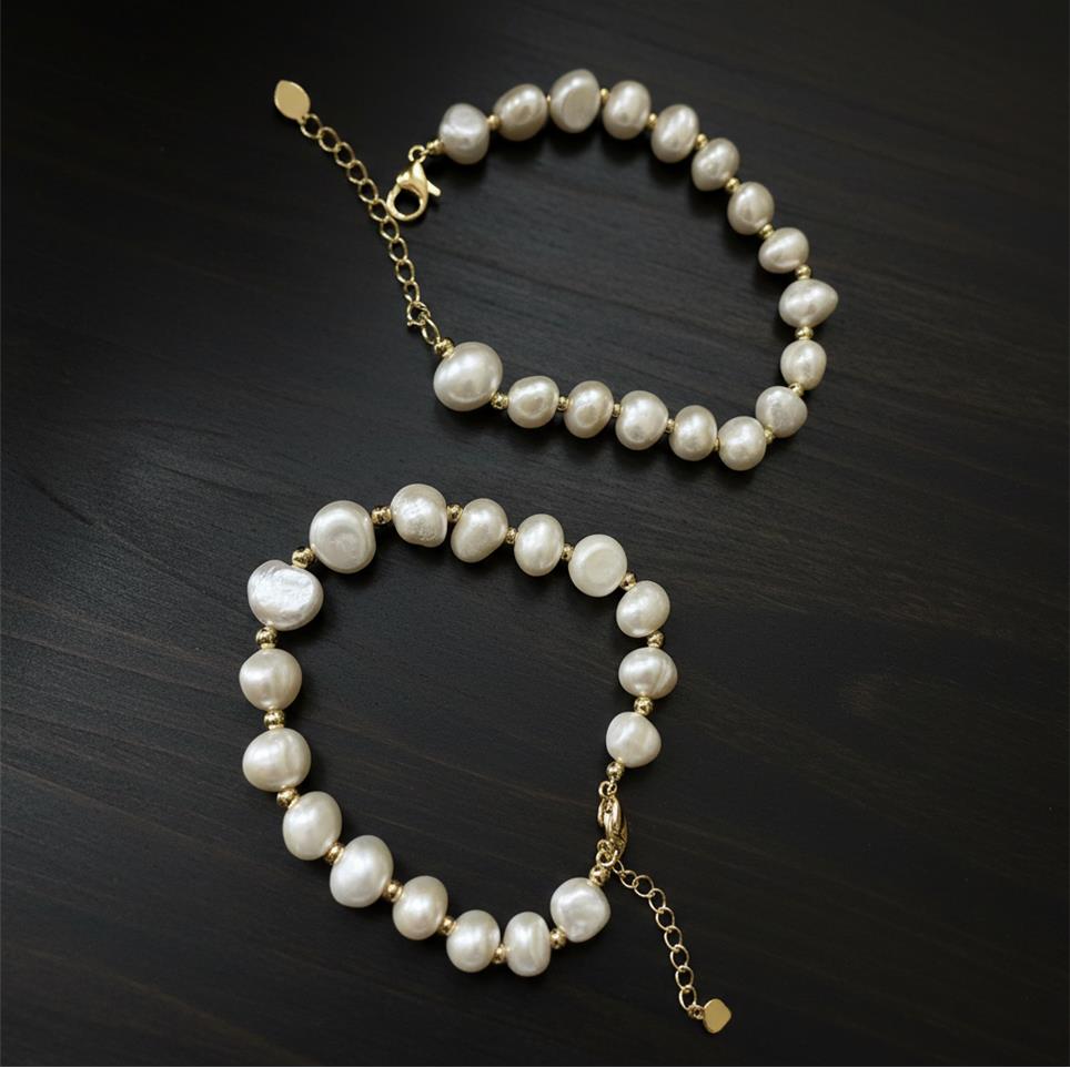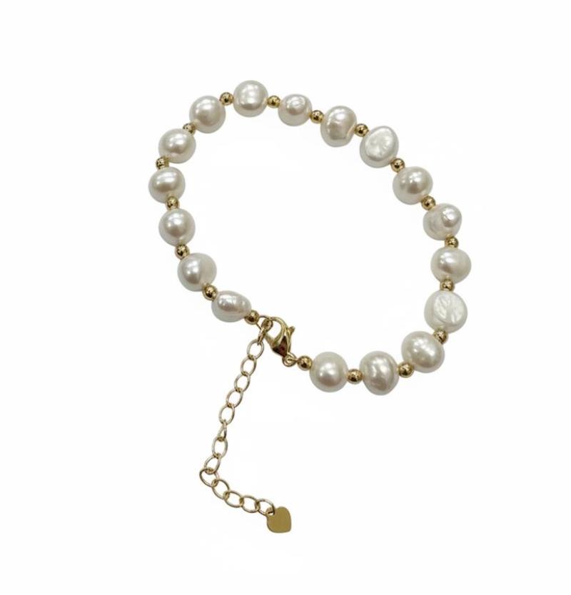 Zink Legierung Perlen Armbänder, Natürliche kultivierte Süßwasserperlen, mit Zinklegierung, BeCharmed Perle, 14 K vergoldet, Einstellbar & für Frau, gemischte Farben, 80mm, Länge:17 cm, verkauft von PC