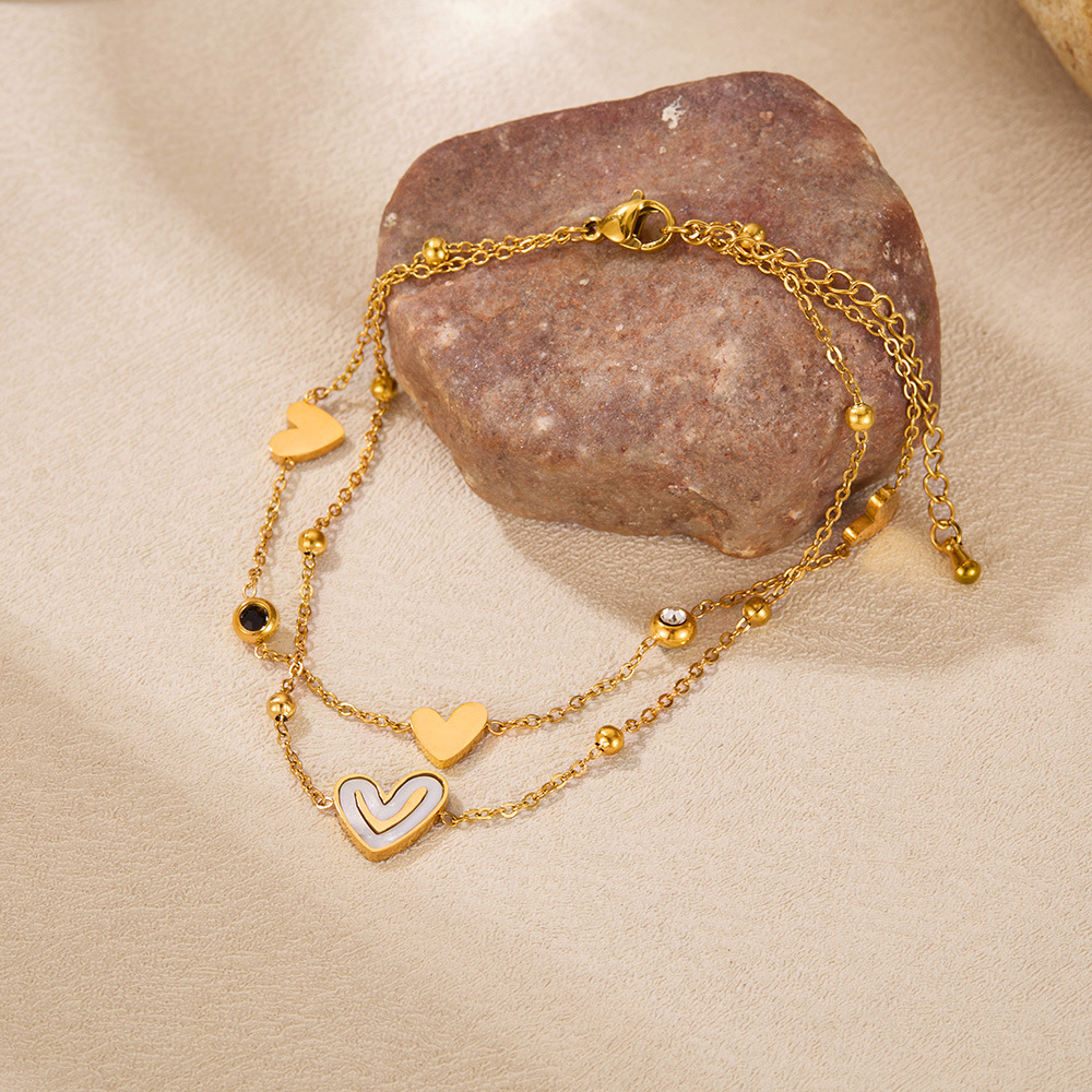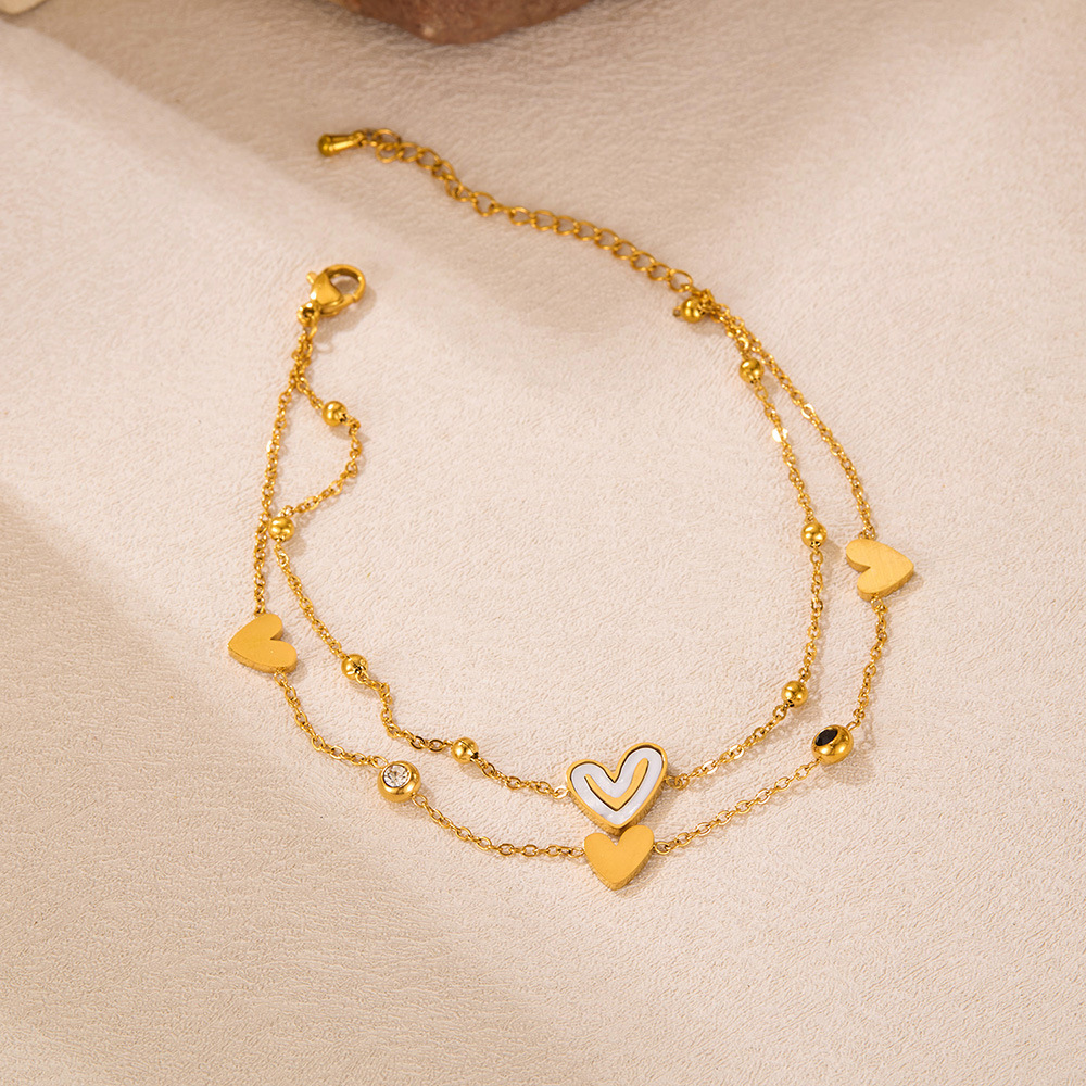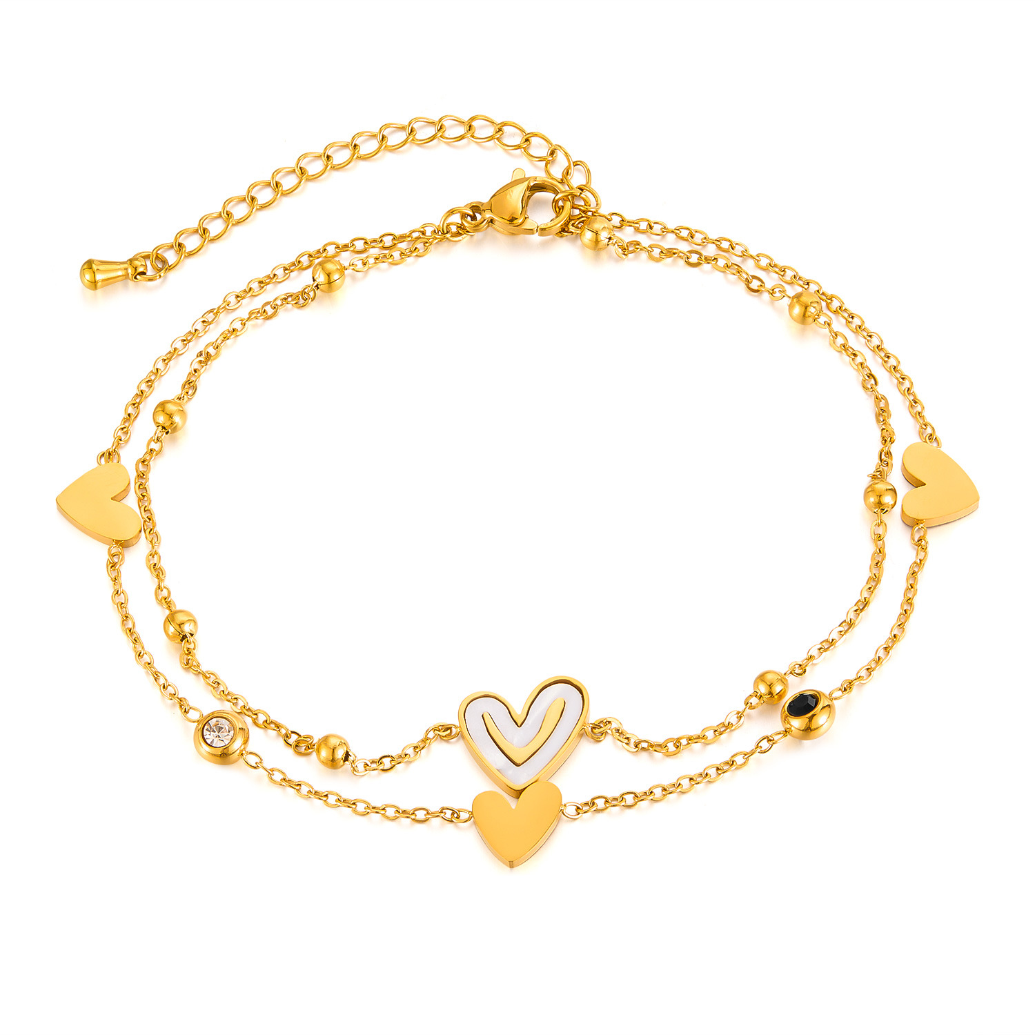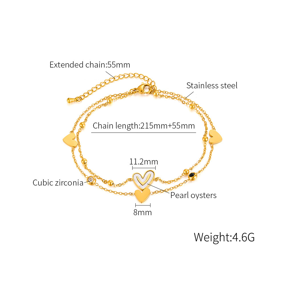 Edelstahl Fußkettchen Schmuck, 304 Edelstahl, mit Perlenoste, mit Verlängerungskettchen von 55mm, Doppelschicht & Micro pave Zirkonia & für Frau, goldfarben, Länge:215 Millimeter, verkauft von PC