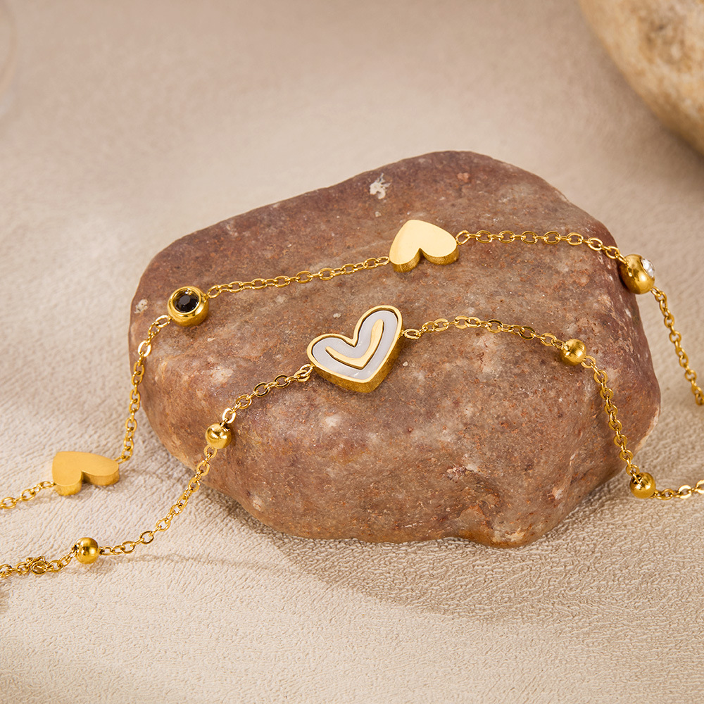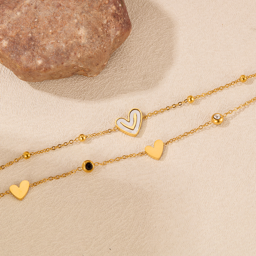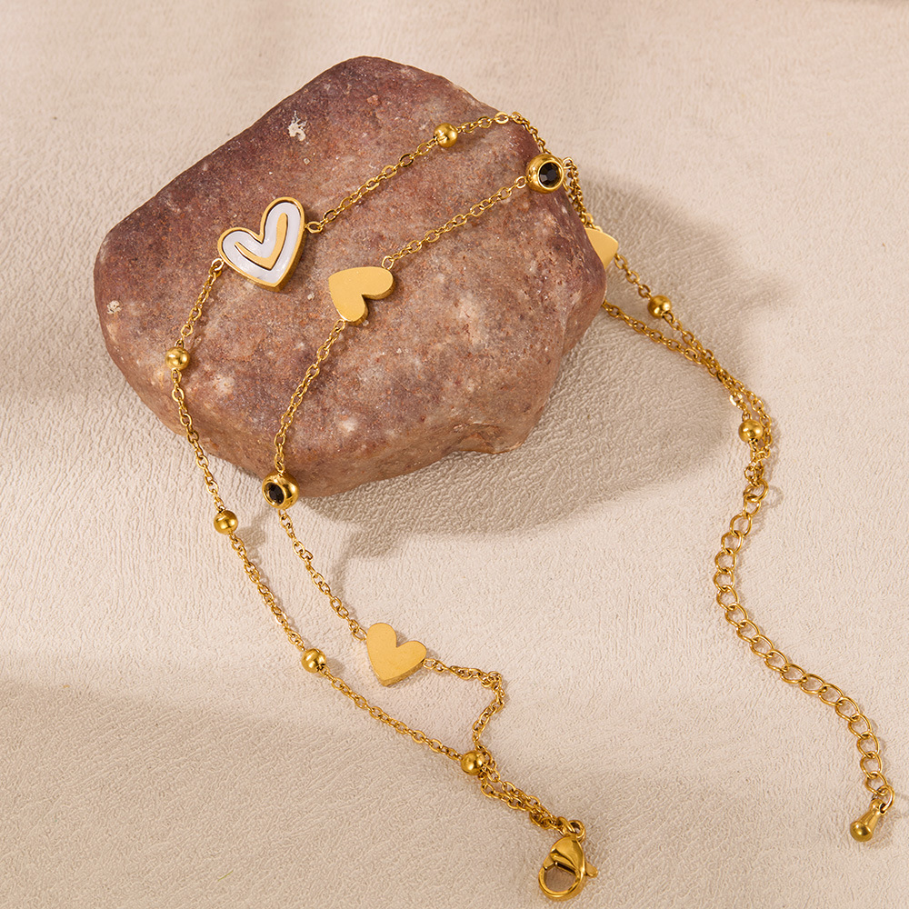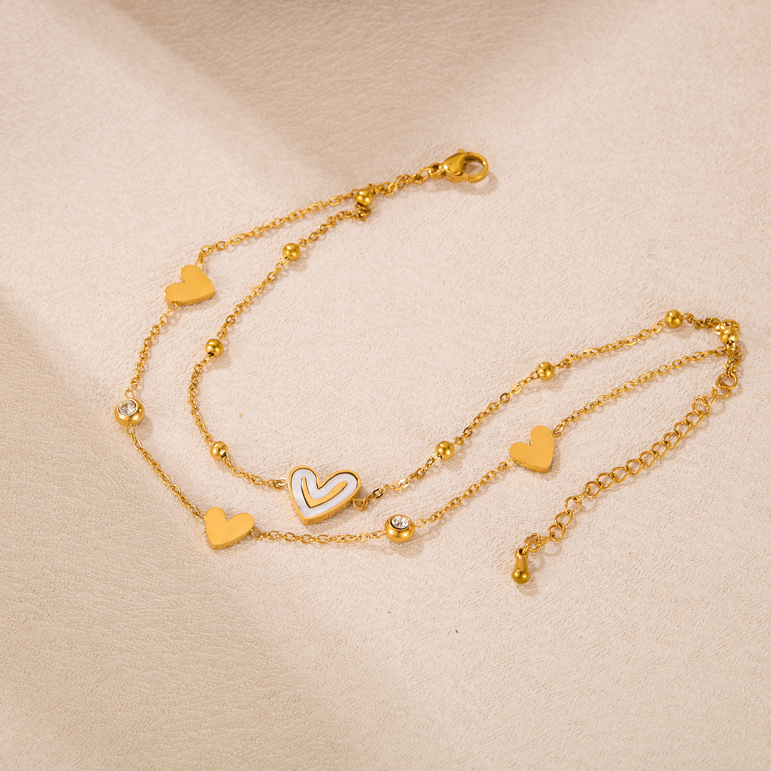 Edelstahl Fußkettchen Schmuck, 304 Edelstahl, mit Perlenoste, mit Verlängerungskettchen von 55mm, Doppelschicht & Micro pave Zirkonia & für Frau, goldfarben, Länge:215 Millimeter, verkauft von PC
