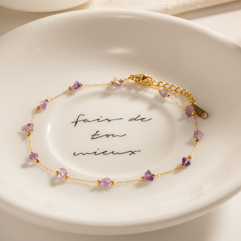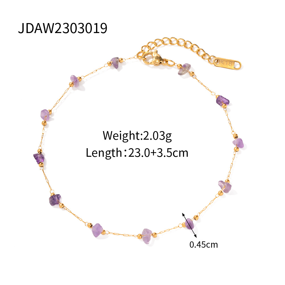 Edelstahl Fußkettchen Schmuck, 304 Edelstahl, mit Natürlicher Kies, mit Verlängerungskettchen von 3.5cm, 18K vergoldet, Modeschmuck & für Frau, Länge:23 cm, verkauft von PC