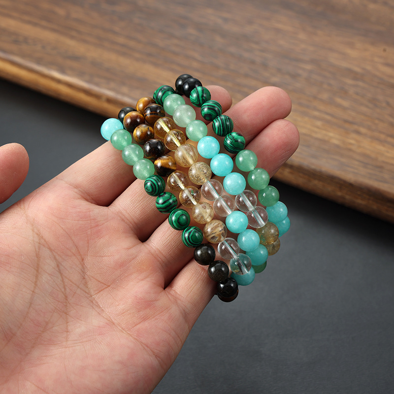 Edelstein Armbänder, mit Glas, rund, Modeschmuck & unisex, gemischte Farben, 8mm, Länge:ca. 19 cm, verkauft von PC