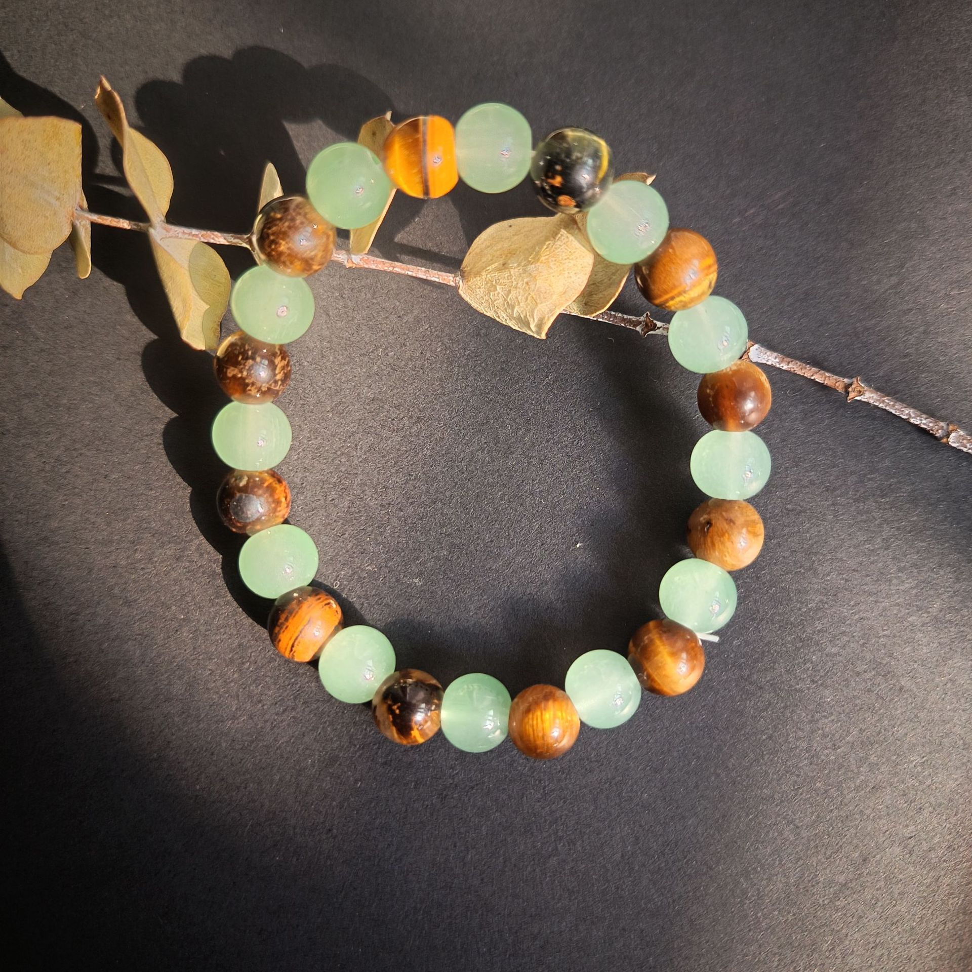 Edelstein Armbänder, Tigerauge, mit Aventurin & Gelbquarz Perlen, rund, unisex, verkauft von PC