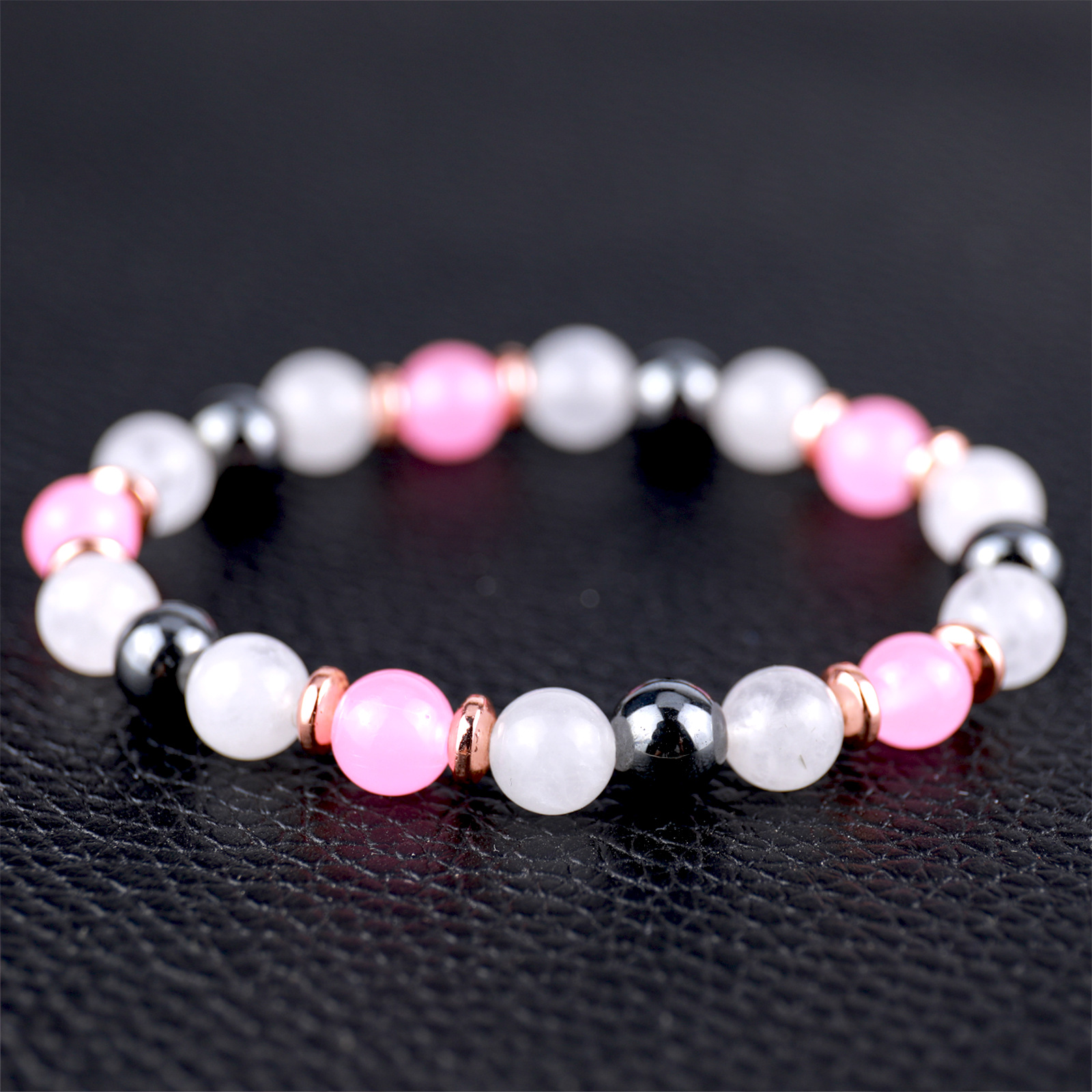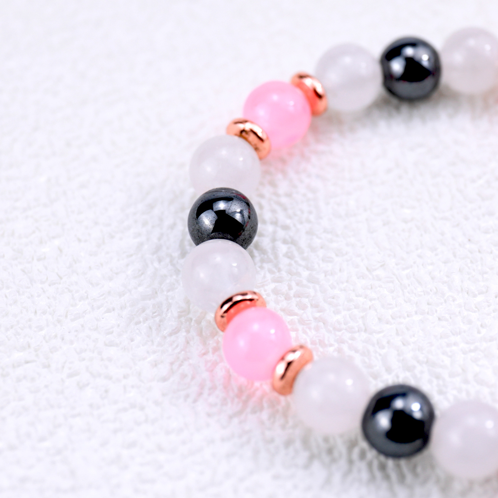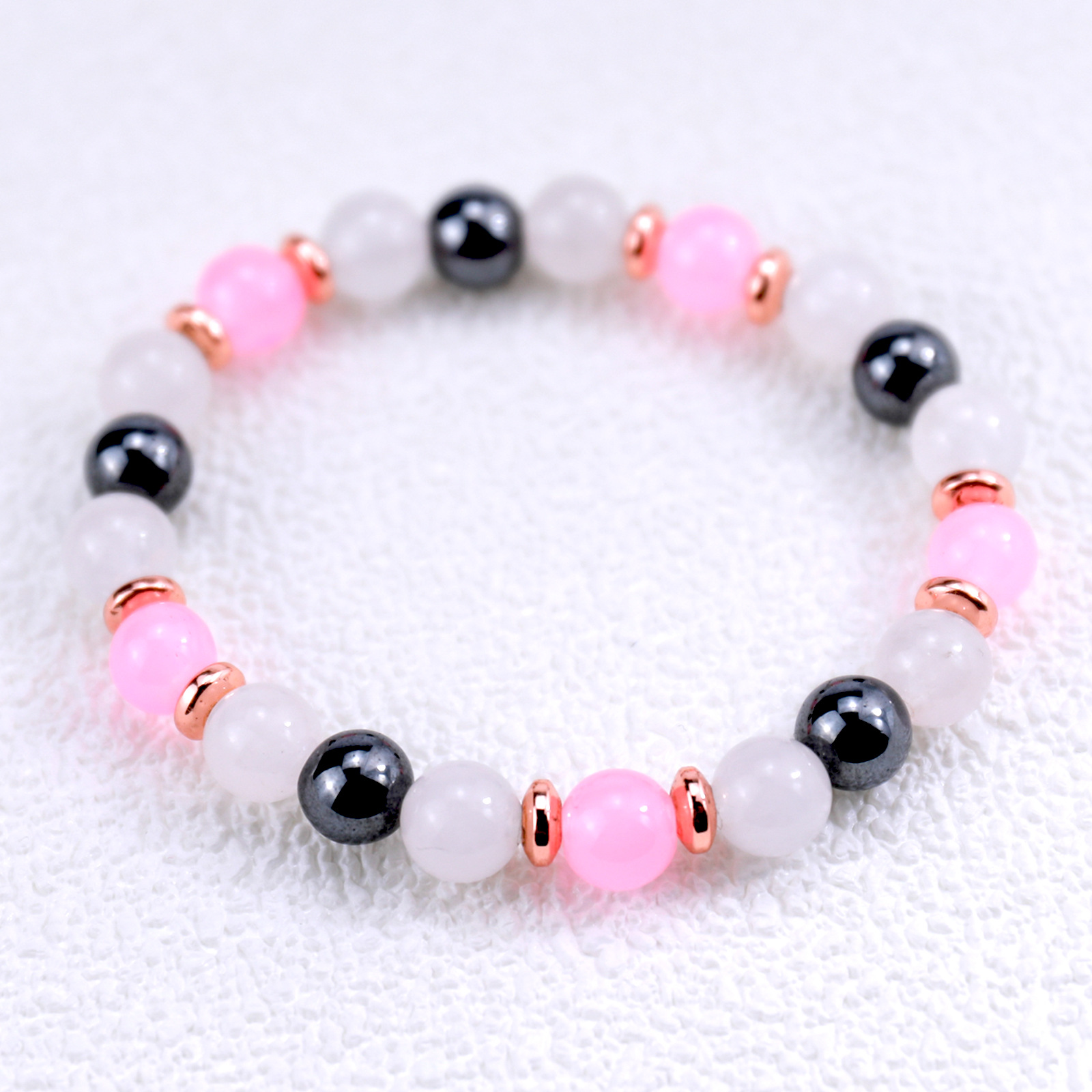 Edelstein Armbänder, Rosenquarz, mit Hämatit, rund, für Frau, Rosa, Länge:12 cm, verkauft von PC