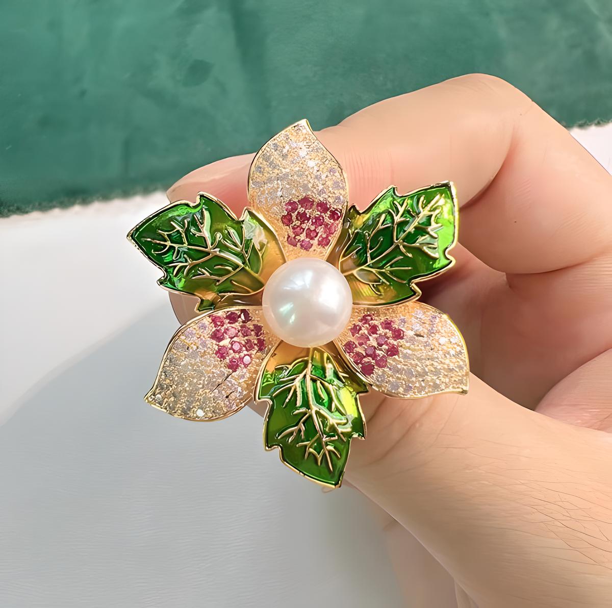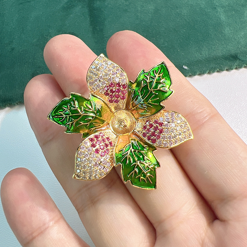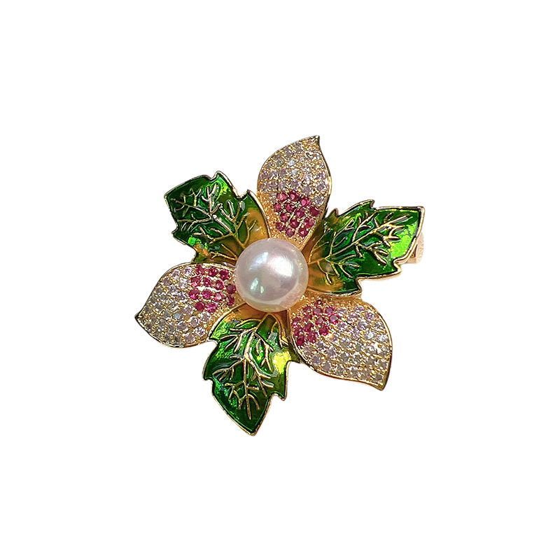 Kunststoff-Perlen-Brosche, Zinklegierung, mit ABS-Kunststoff-Perlen, plattiert, für Frau & Emaille & mit Strass & stumpfmatt, keine, frei von Blei & Kadmium, 54x43mm, verkauft von PC