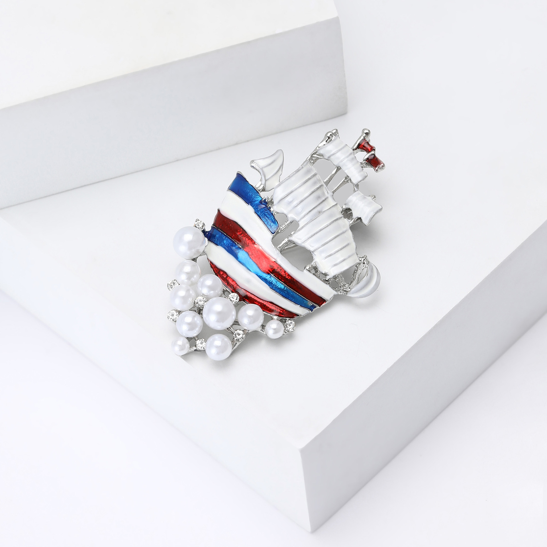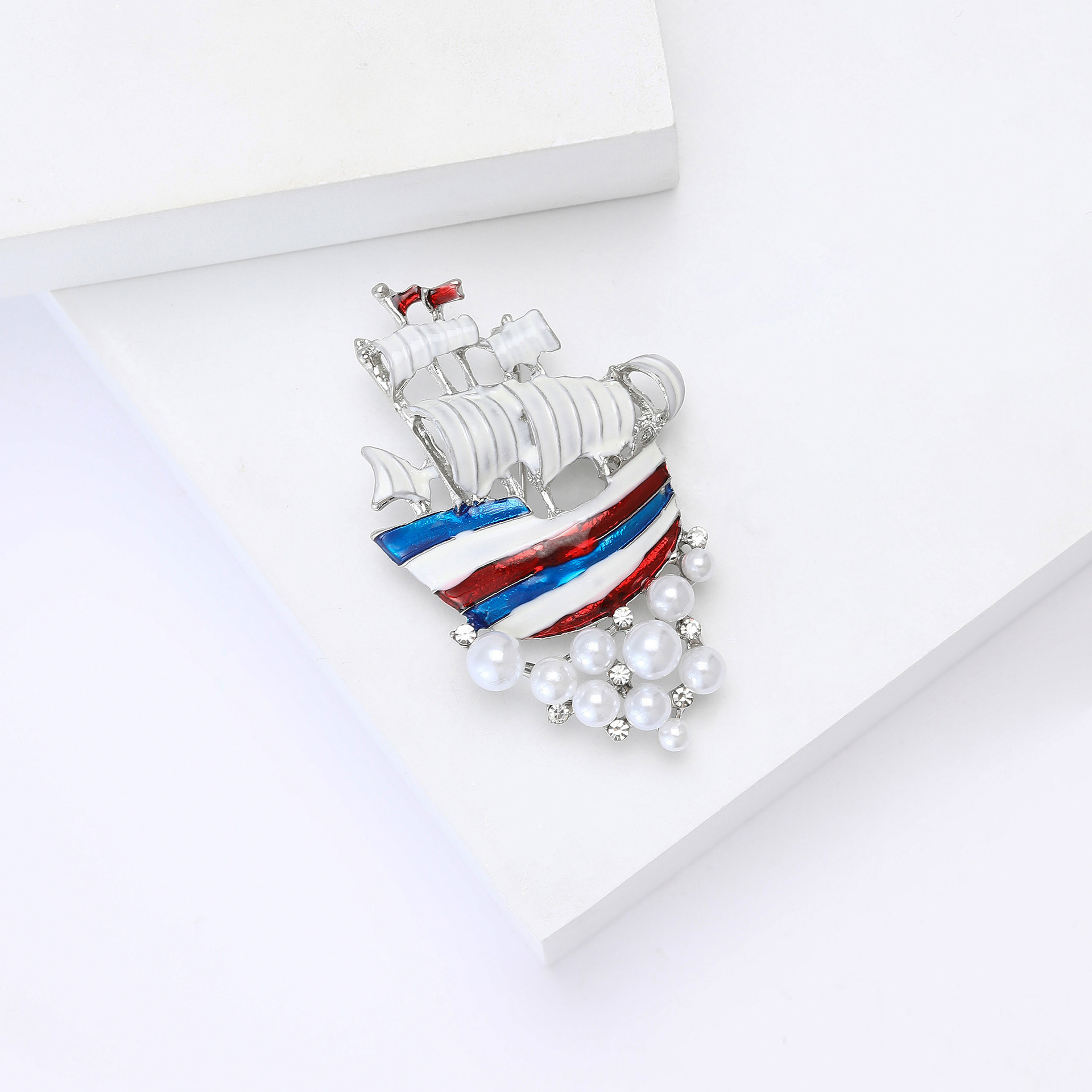 Kunststoff-Perlen-Brosche, Zinklegierung, mit Kunststoff Perlen, Schiff, silberfarben plattiert, für Frau & Emaille, gemischte Farben, verkauft von PC