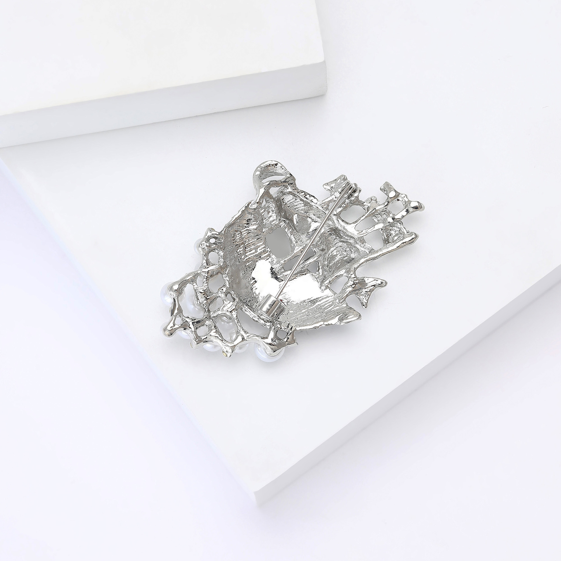 Kunststoff-Perlen-Brosche, Zinklegierung, mit ABS-Kunststoff-Perlen, plattiert, für Frau & Emaille & mit Strass & stumpfmatt, keine, frei von Blei & Kadmium, 54x43mm, verkauft von PC