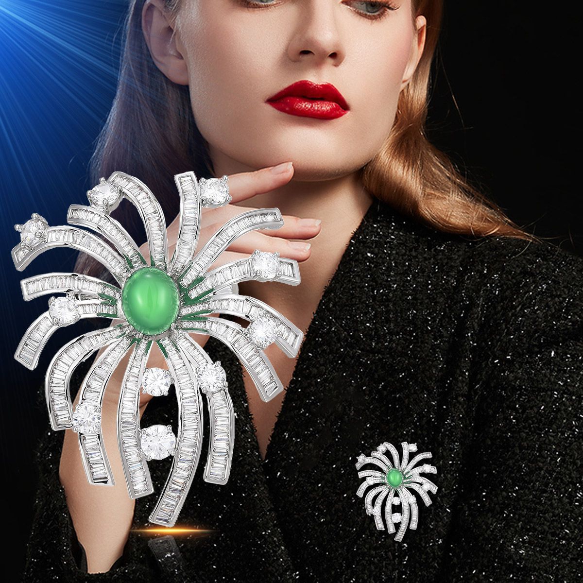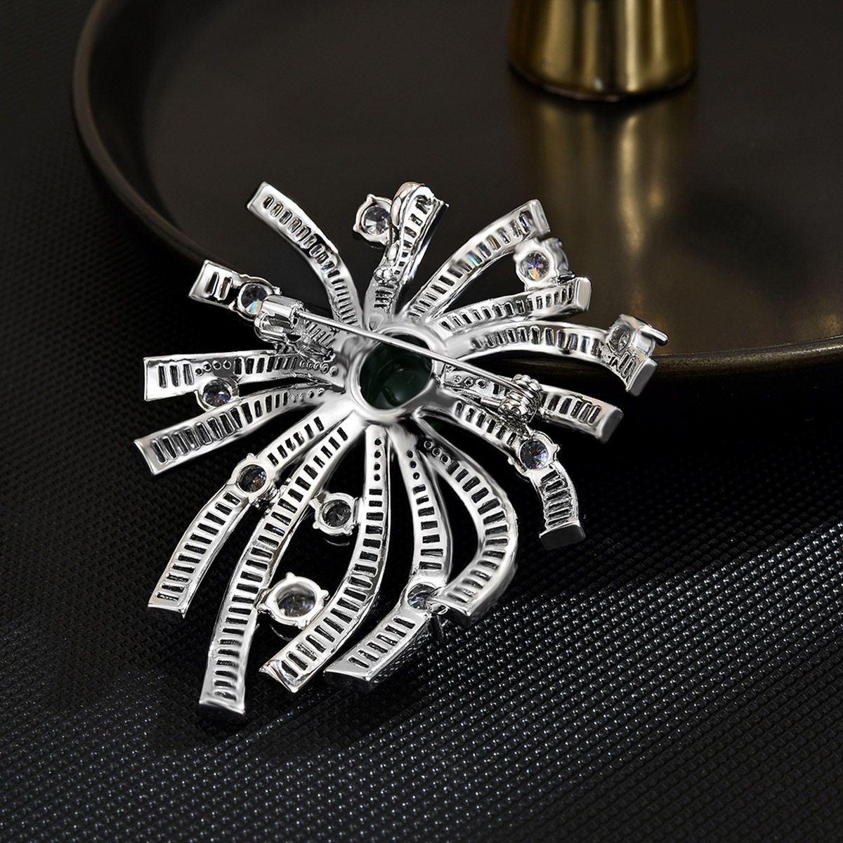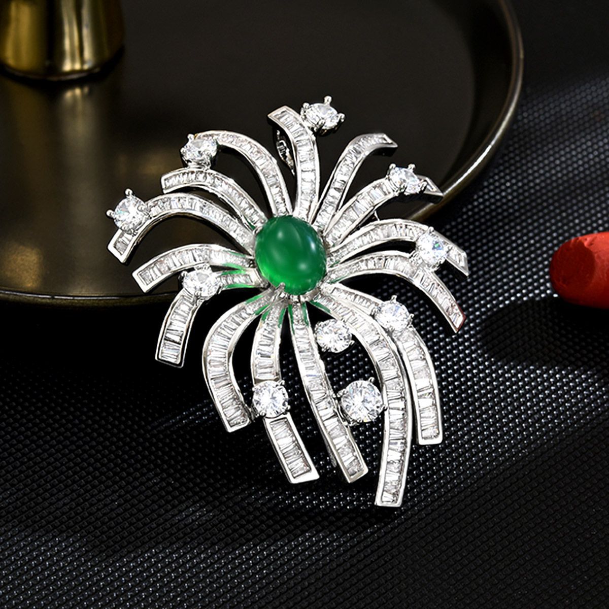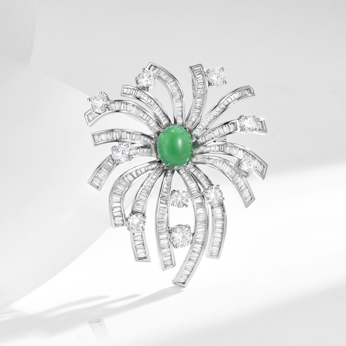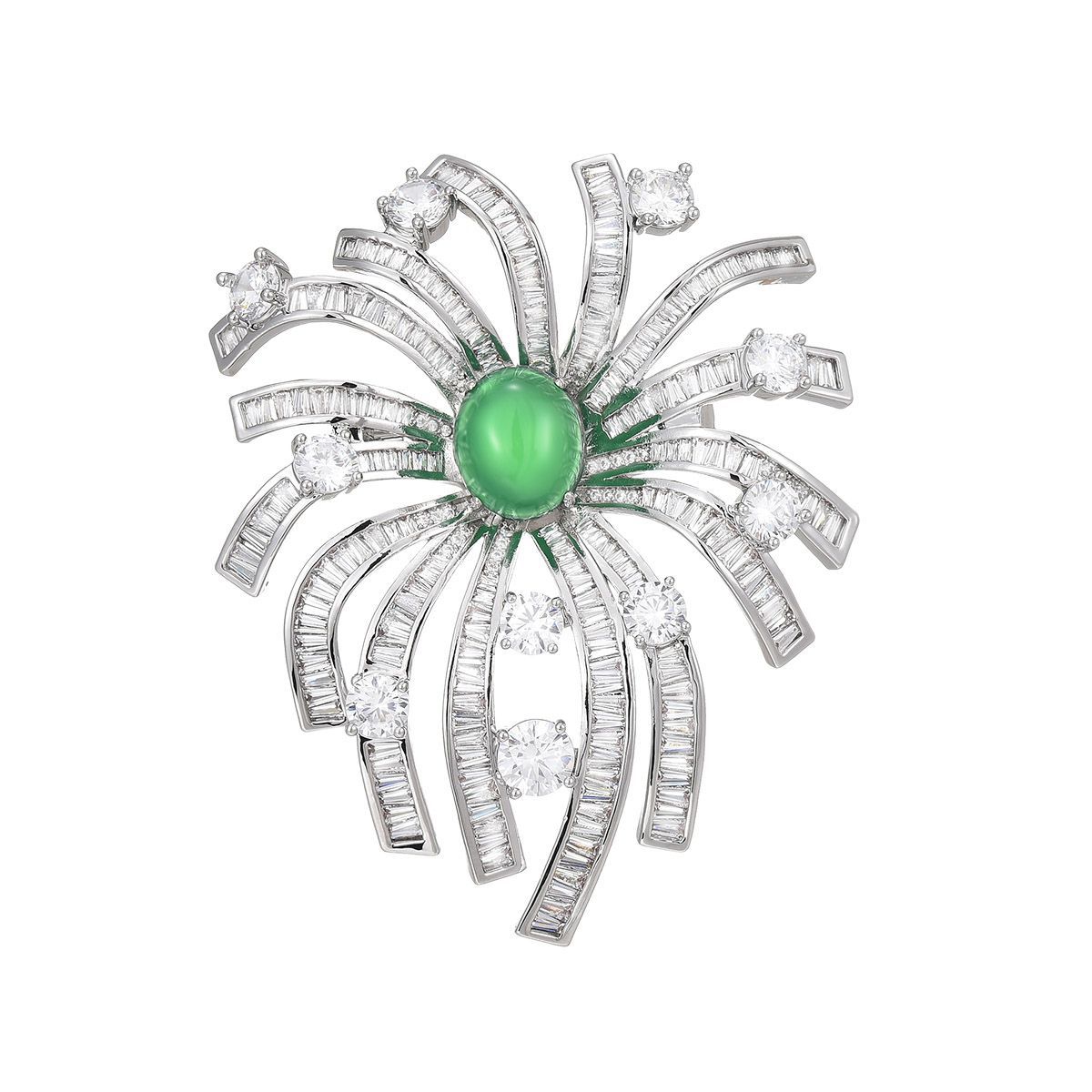 Edelstein Brosche, Messing, mit Grüner Chalcedon, plattiert, Micro pave Zirkonia & für Frau, Silberfarbe, 62x50mm, verkauft von PC