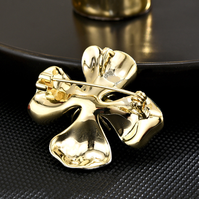 Kubische Zirkonia-Brosche, Messing, Blume, vergoldet, mit kubischem Zirkonia & facettierte, keine, 48x34mm, verkauft von PC