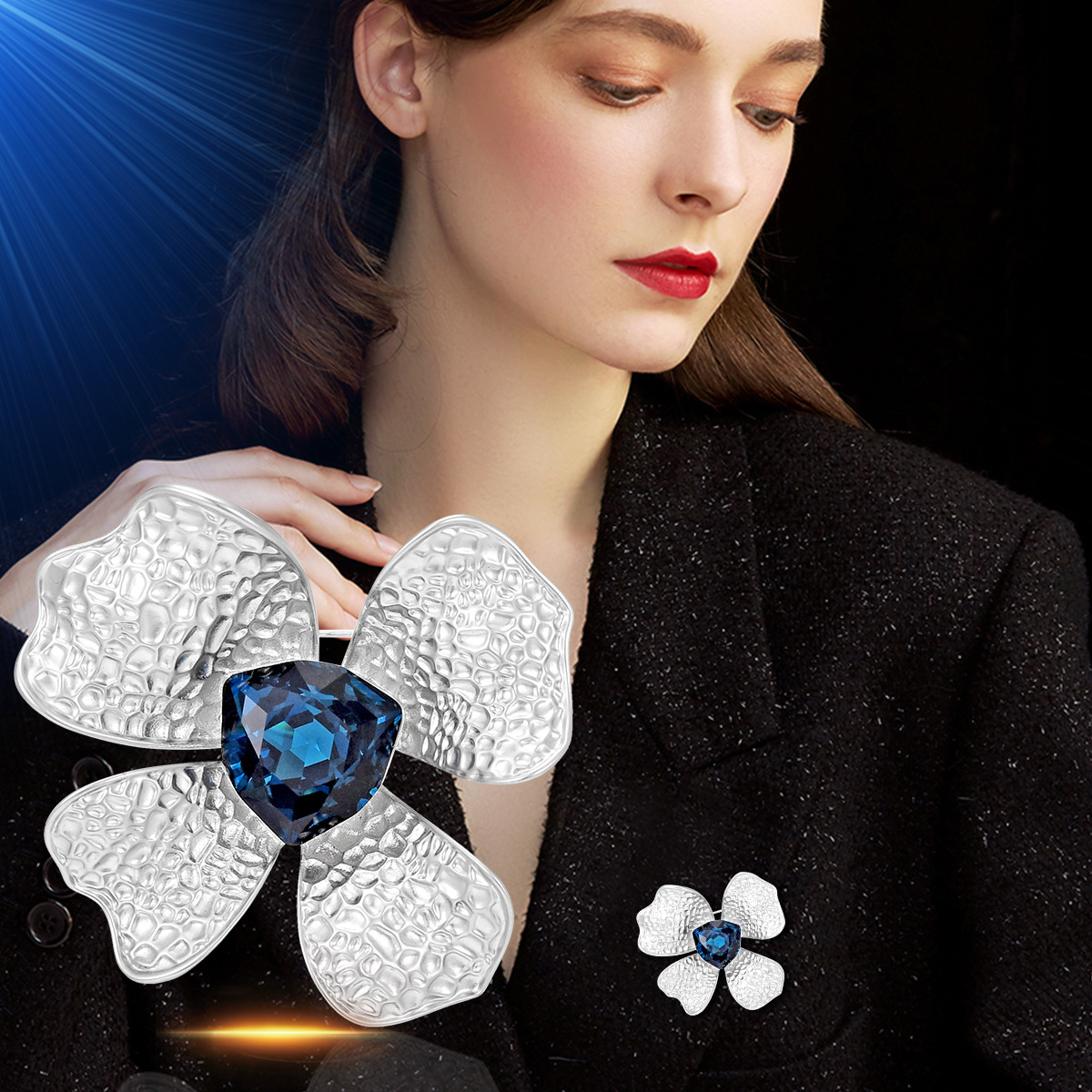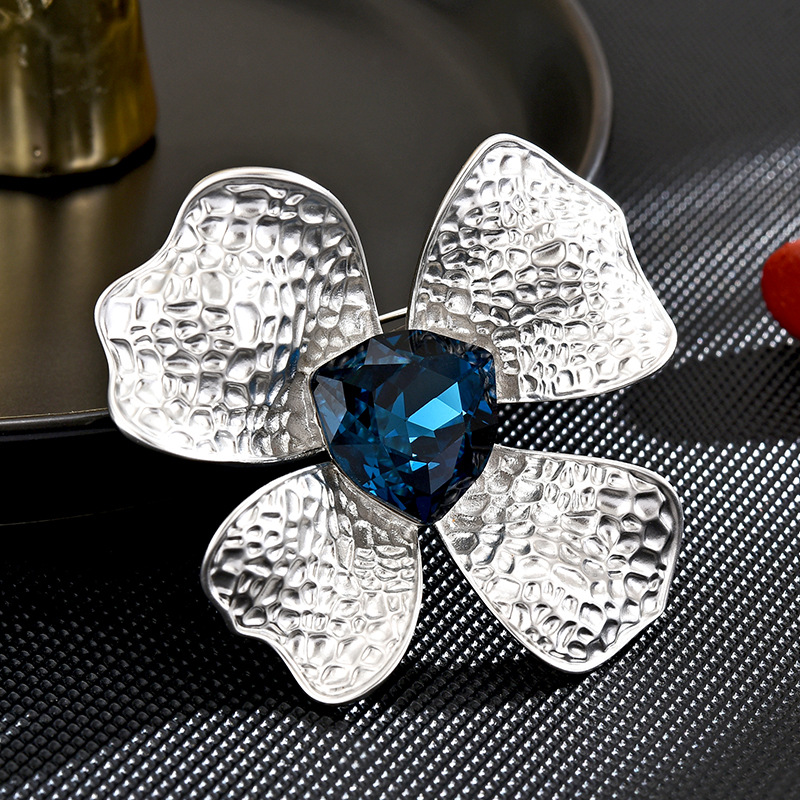 Kubische Zirkonia-Brosche, Messing, Blume, platiniert, mit kubischem Zirkonia & facettierte, keine, 32x32mm, verkauft von PC