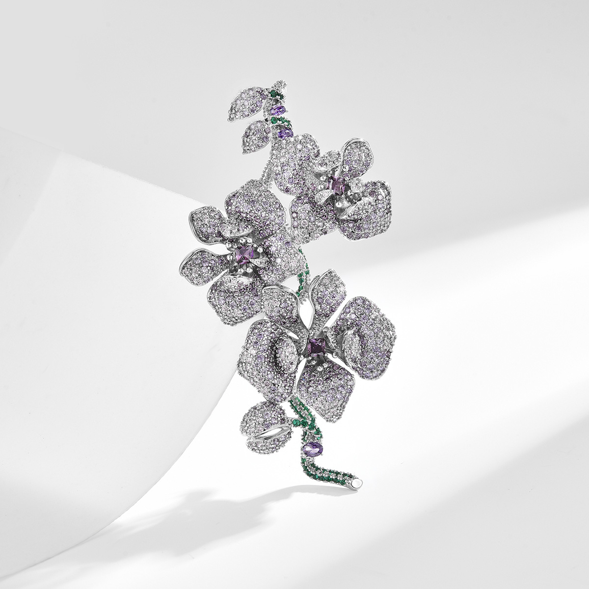 Kubische Zirkonia-Brosche, Messing, Blume, plattiert, Micro pave Zirkonia & facettierte, keine, 50x24x13mm, verkauft von PC