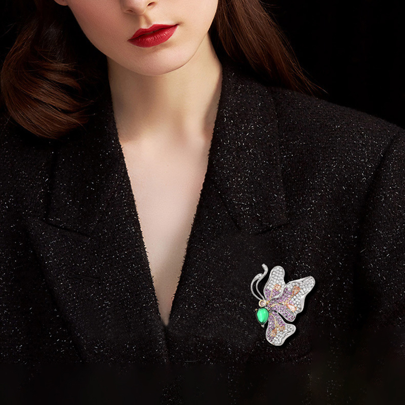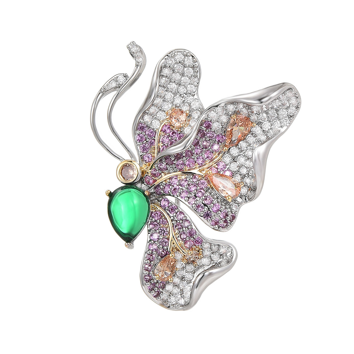 Kubische Zirkonia-Brosche, Messing, plattiert, Micro pave Zirkonia & für Frau, Silberfarbe, 36x26mm, verkauft von PC