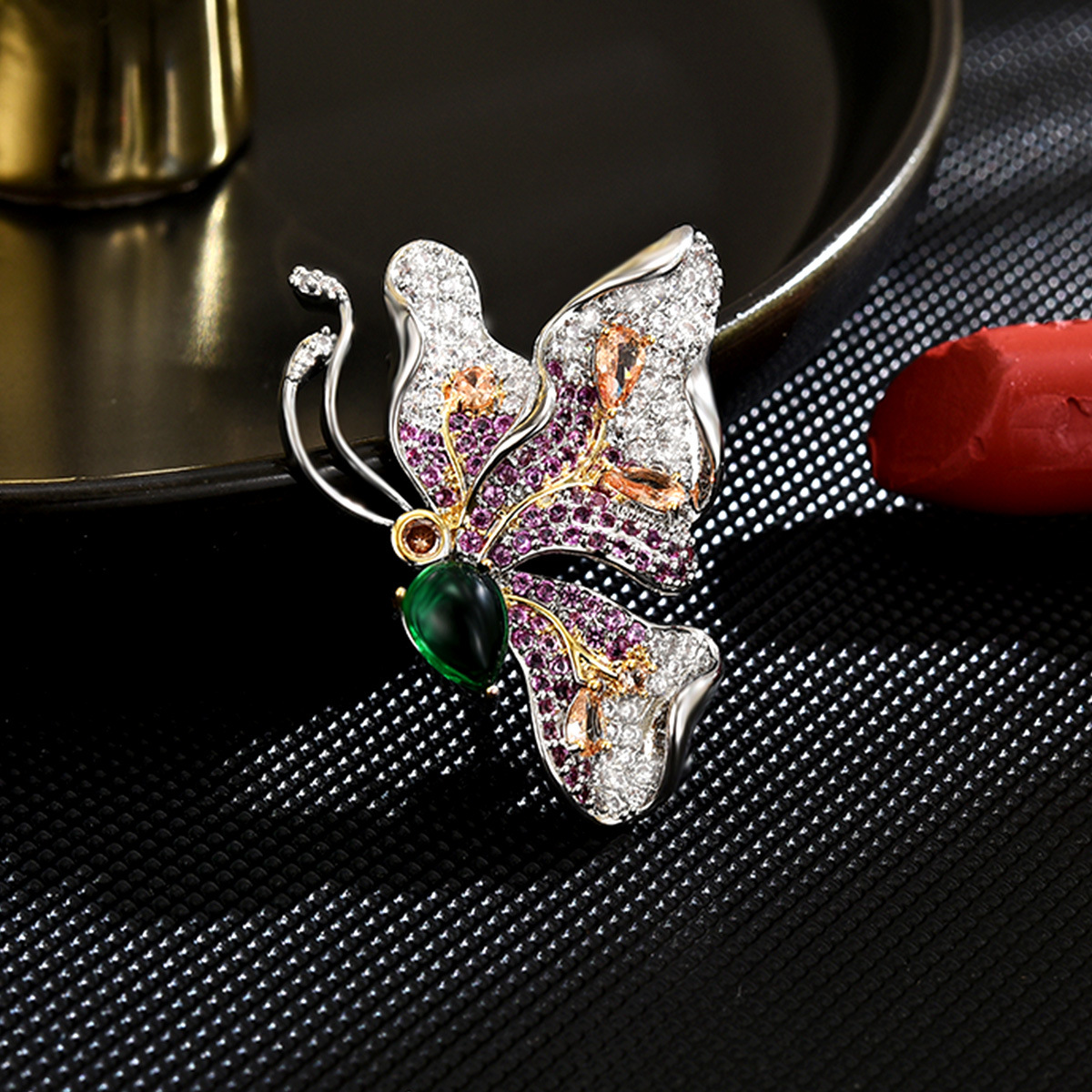 Kubische Zirkonia-Brosche, Messing, Blume, plattiert, Micro pave Zirkonia & facettierte, keine, 50x24x13mm, verkauft von PC
