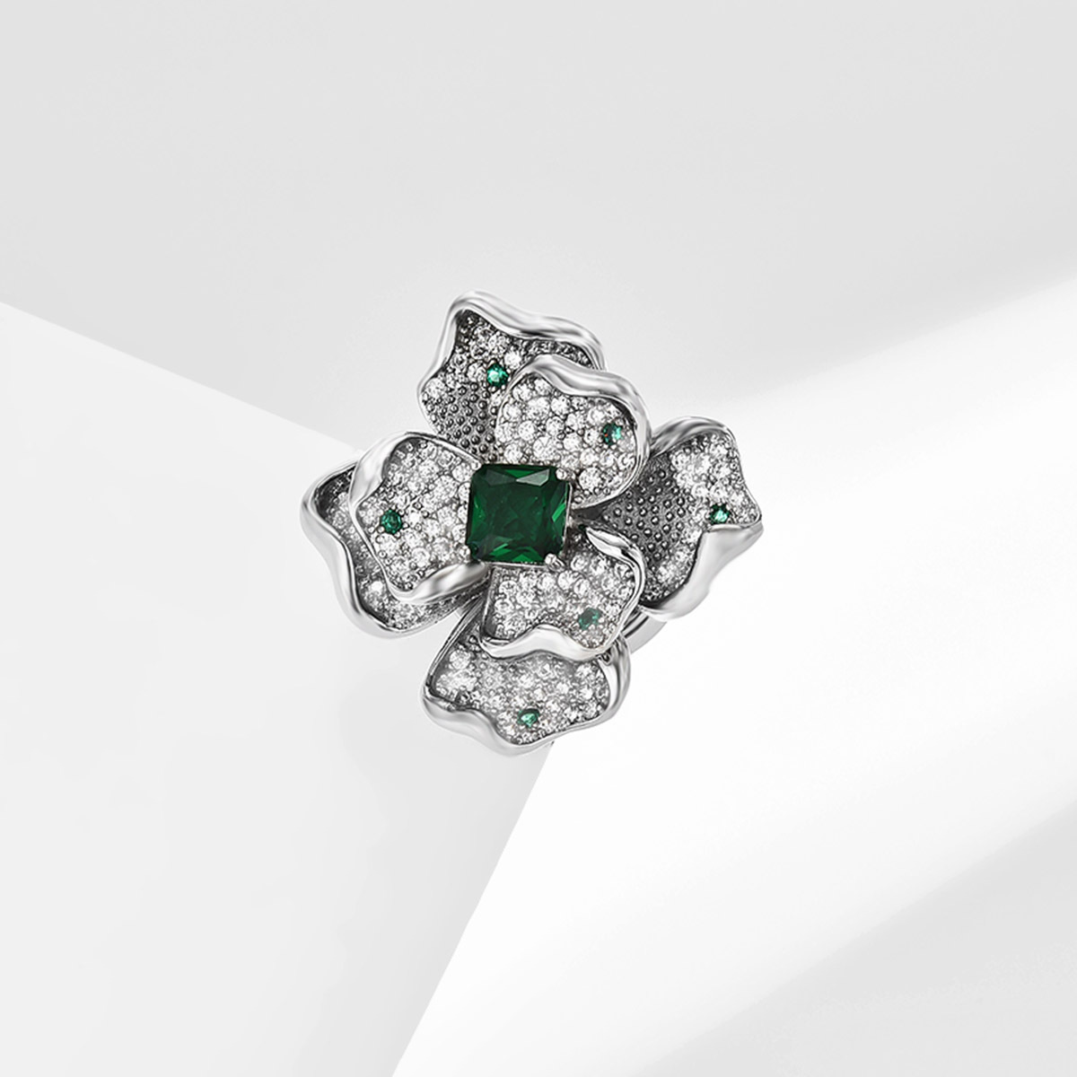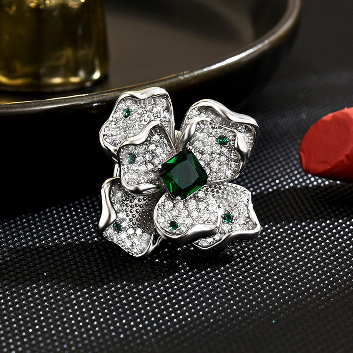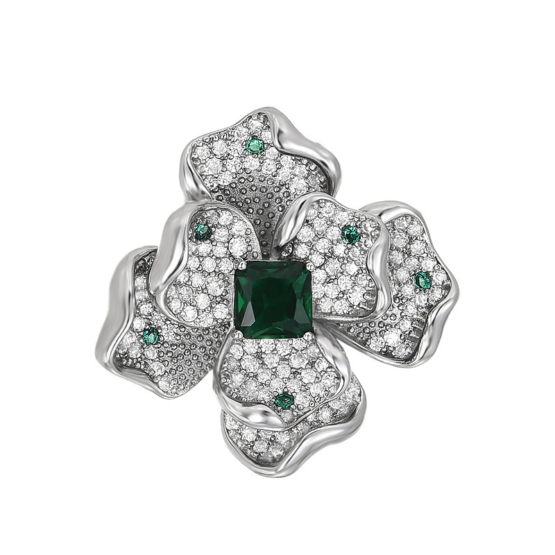 Kubische Zirkonia-Brosche, Messing, Blume, plattiert, Micro pave Zirkonia & facettierte, keine, 50x24x13mm, verkauft von PC