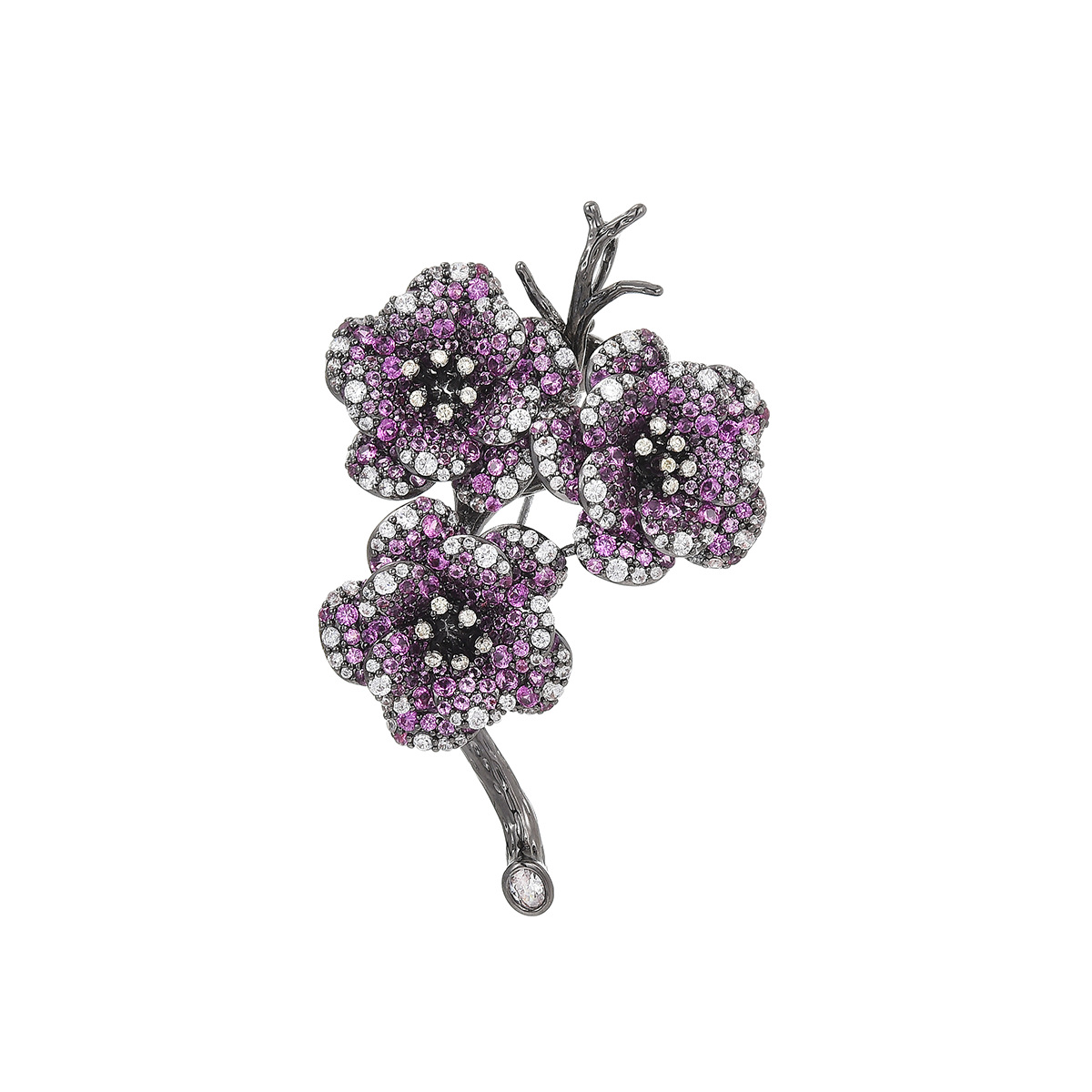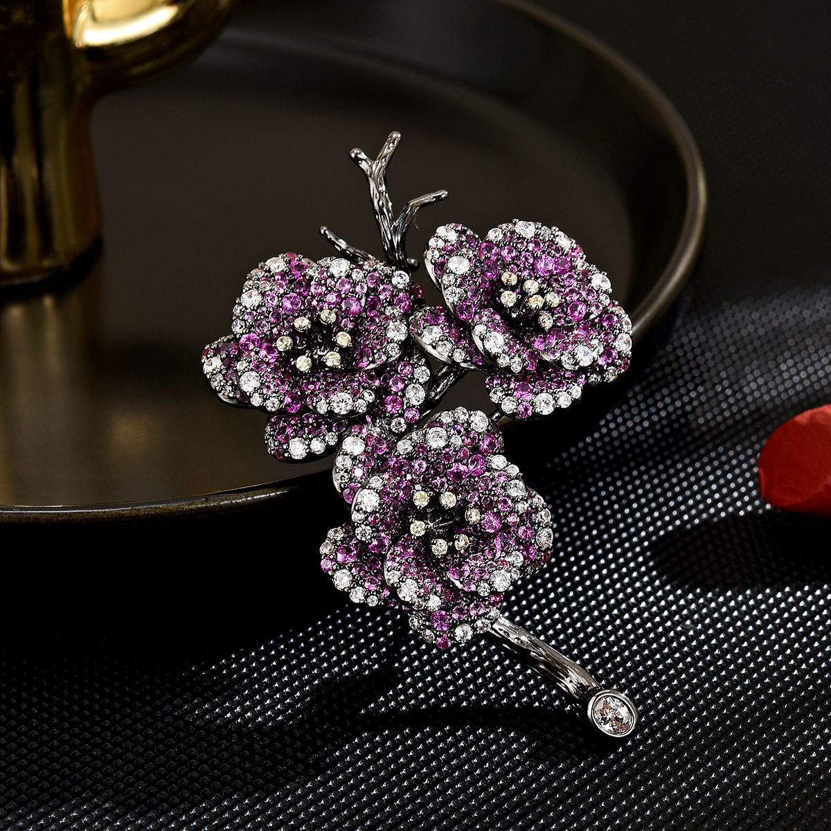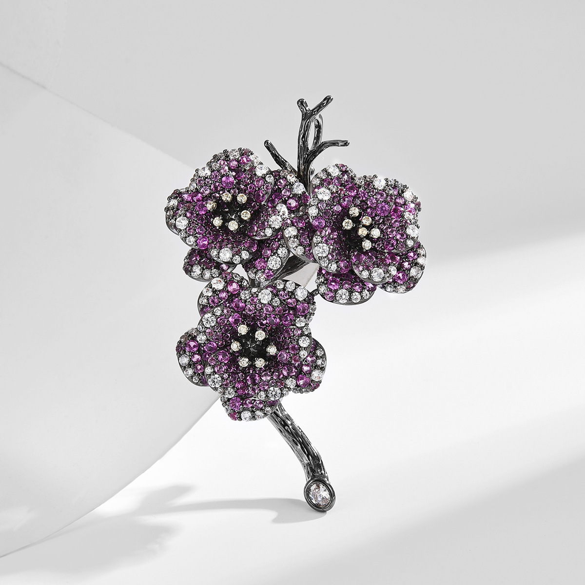 Kubische Zirkonia-Brosche, Messing, Blume, plattiert, Micro pave Zirkonia & facettierte, keine, 50x24x13mm, verkauft von PC