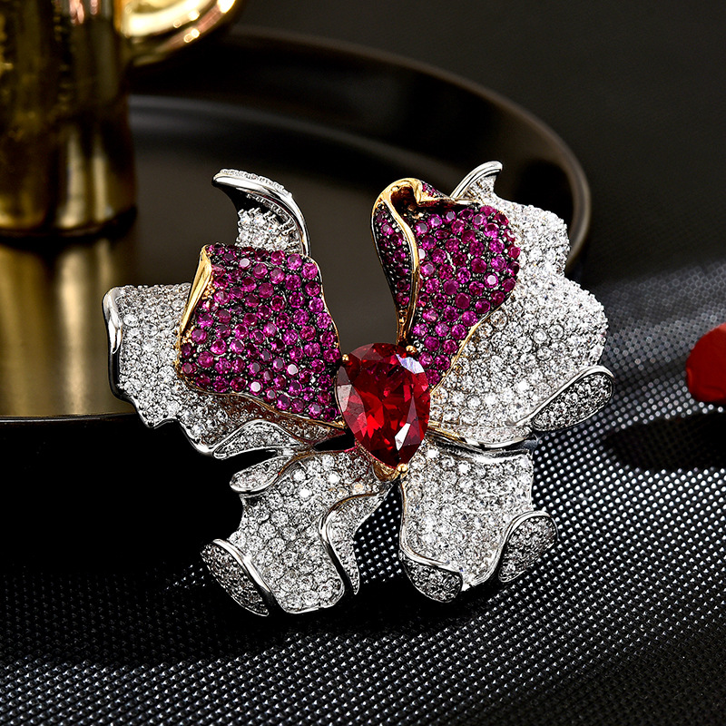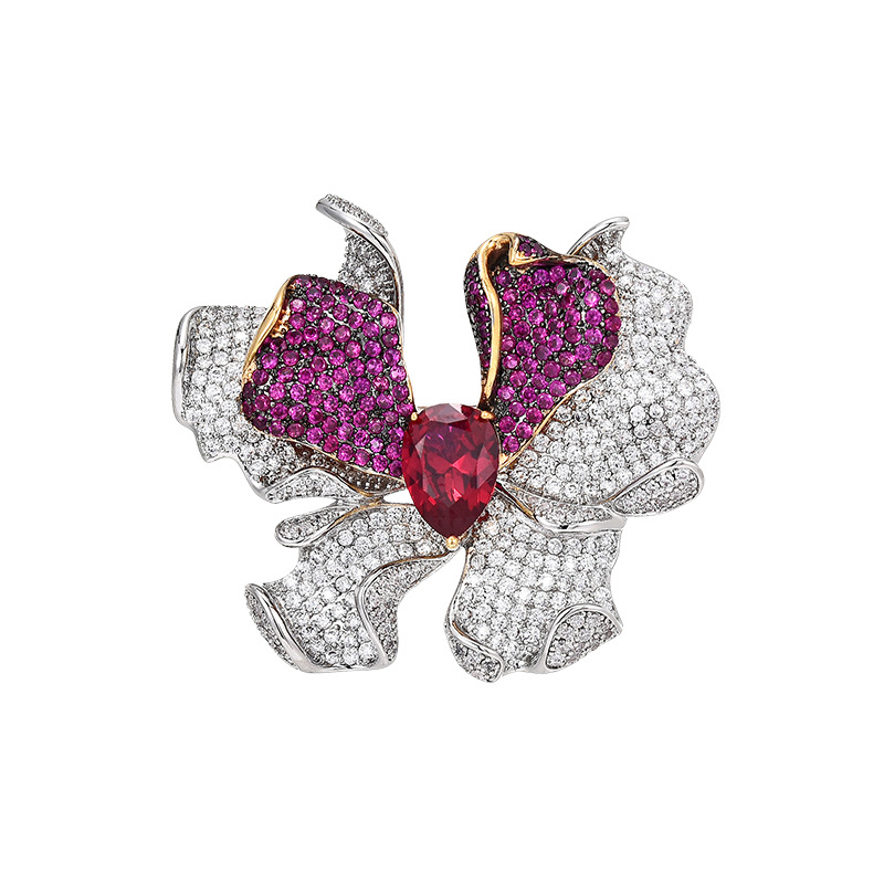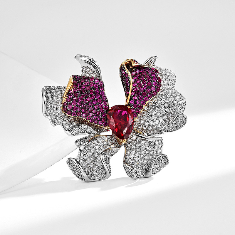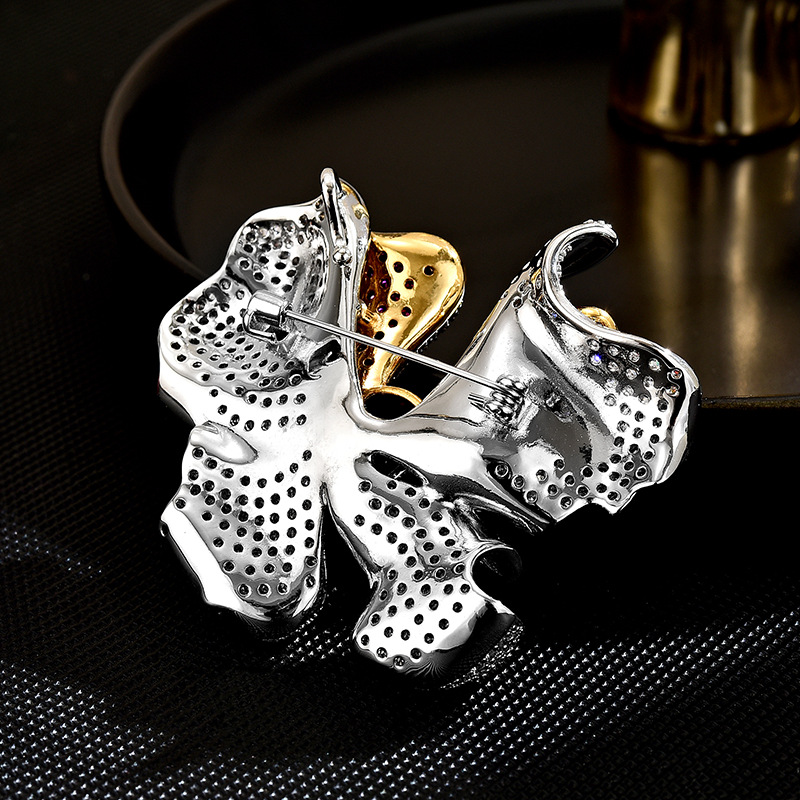 Kubische Zirkonia-Brosche, Messing, Blume, plattiert, Micro pave Zirkonia & facettierte, keine, 50x24x13mm, verkauft von PC