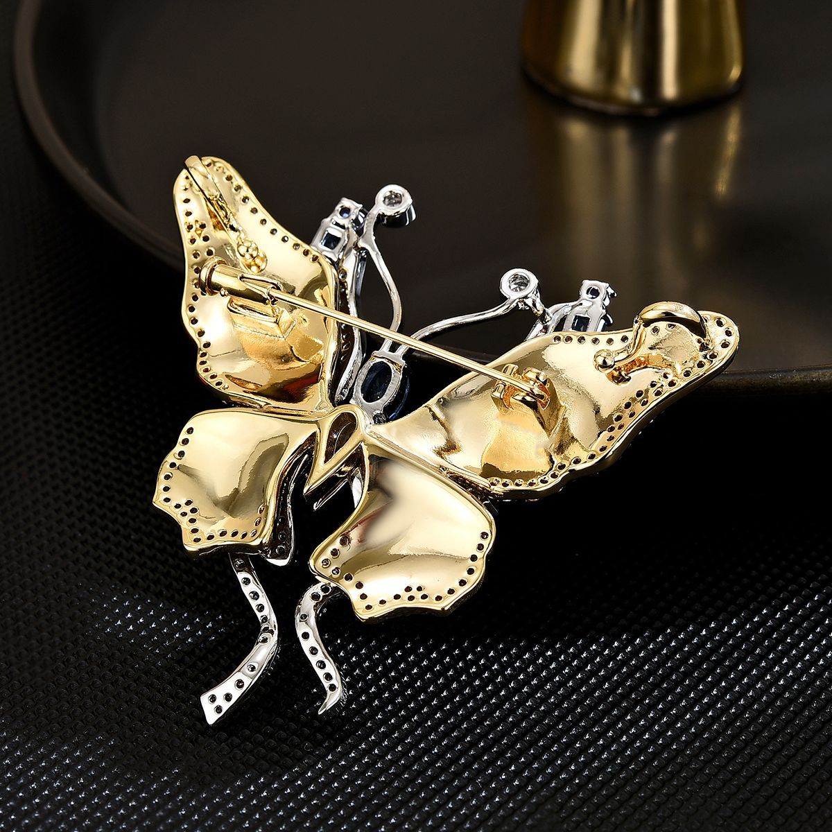 Kubische Zirkonia-Brosche, Messing, Blume, vergoldet, mit kubischem Zirkonia & facettierte, keine, 48x34mm, verkauft von PC