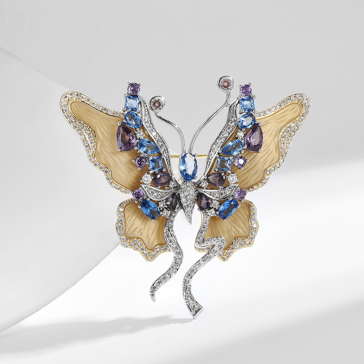 Kubische Zirkonia-Brosche, Messing, plattiert, Micro pave Zirkonia & für Frau, goldfarben, 52x55mm, verkauft von PC