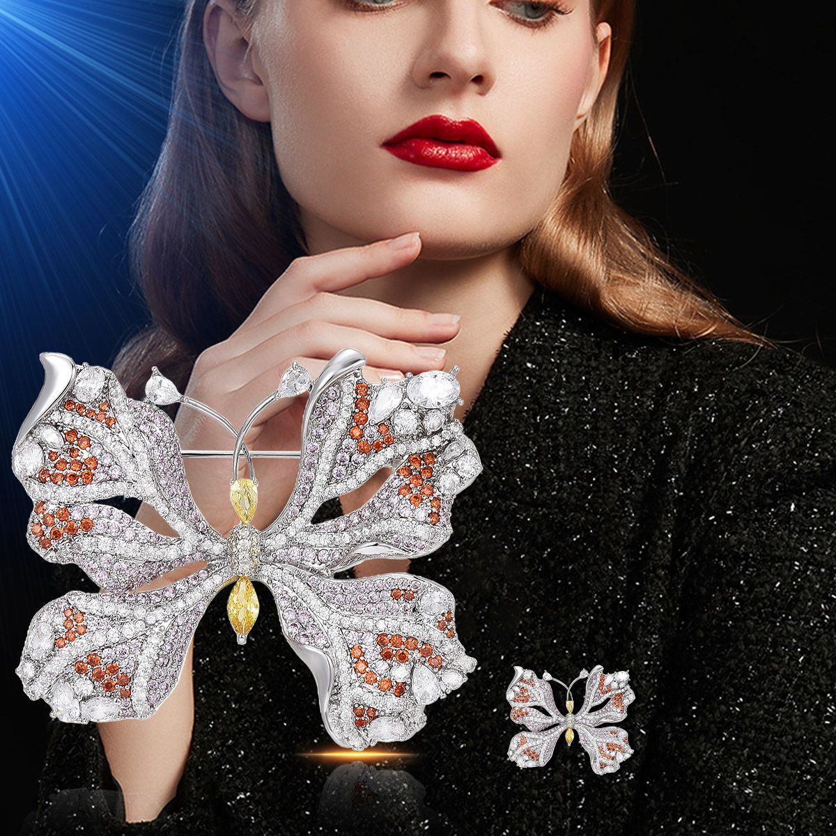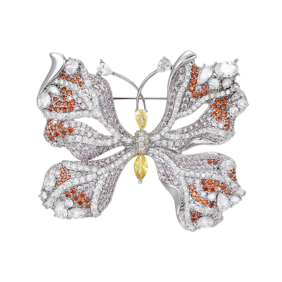 Kubische Zirkonia-Brosche, Messing, plattiert, Micro pave Zirkonia & für Frau, Silberfarbe, 44x51mm, verkauft von PC