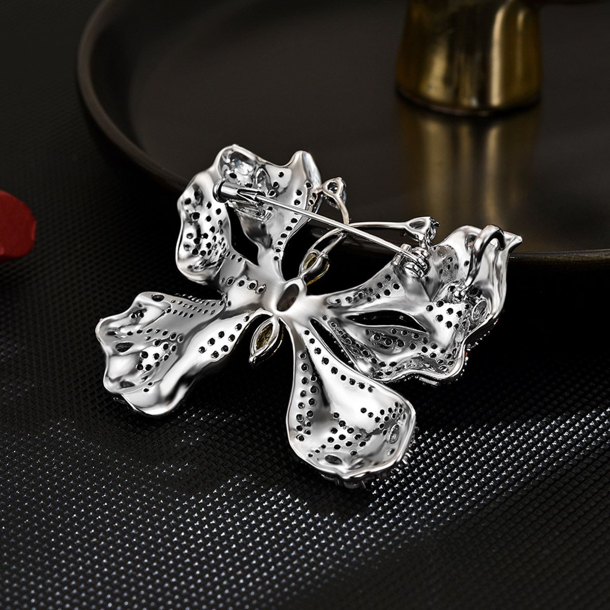 Kubische Zirkonia-Brosche, Messing, Blume, platiniert, mit kubischem Zirkonia, keine, 40x40mm, verkauft von PC