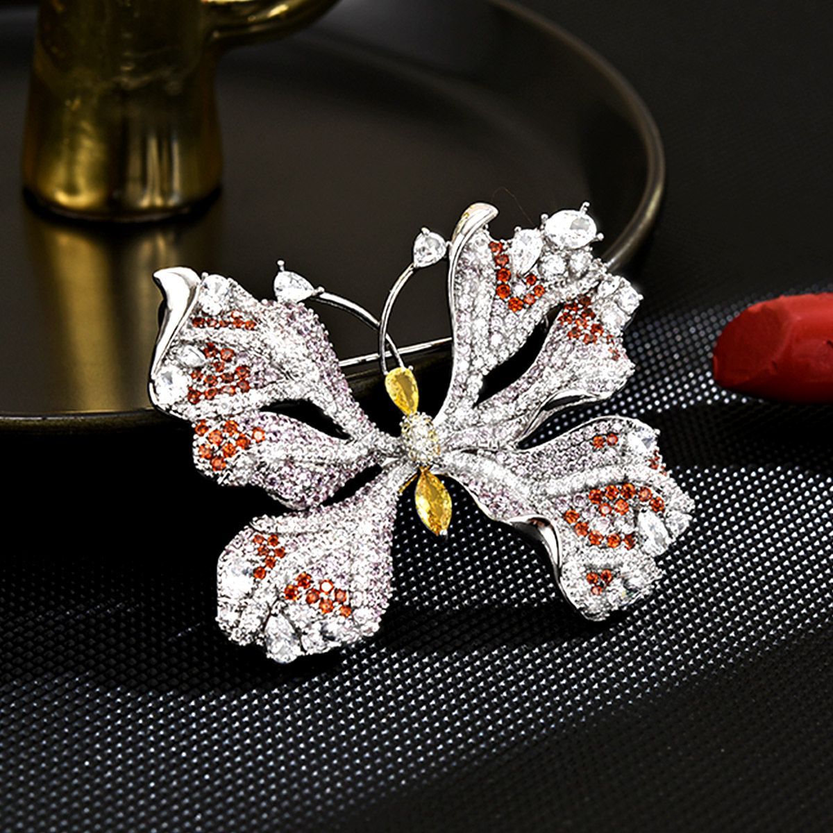 Kubische Zirkonia-Brosche, Messing, Blume, plattiert, Micro pave Zirkonia & facettierte, keine, 50x24x13mm, verkauft von PC