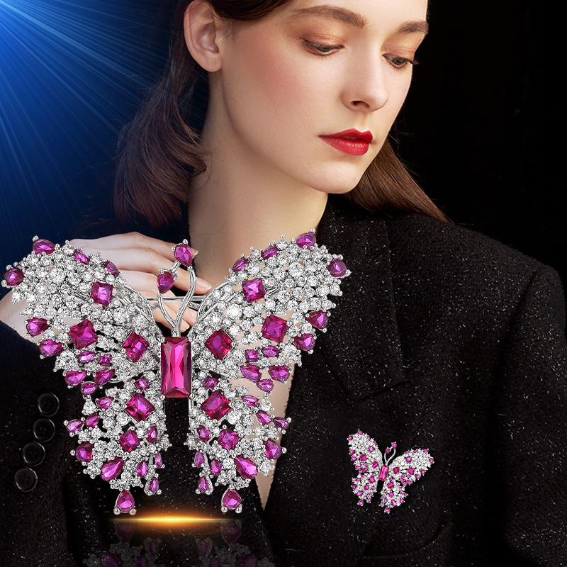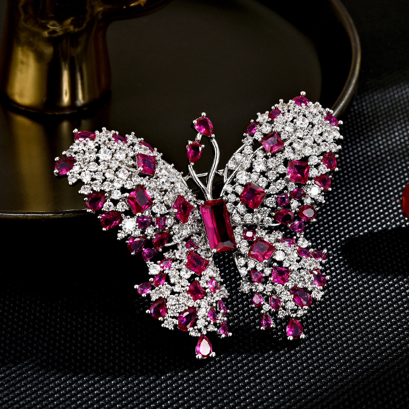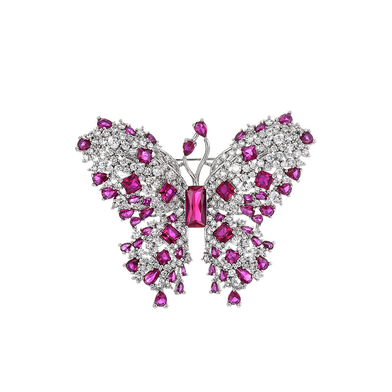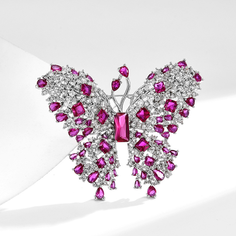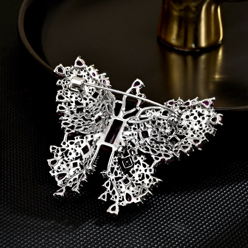 Kubische Zirkonia-Brosche, Messing, plattiert, Micro pave Zirkonia & für Frau, Silberfarbe, 46x56mm, verkauft von PC