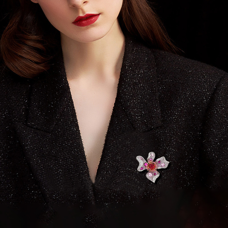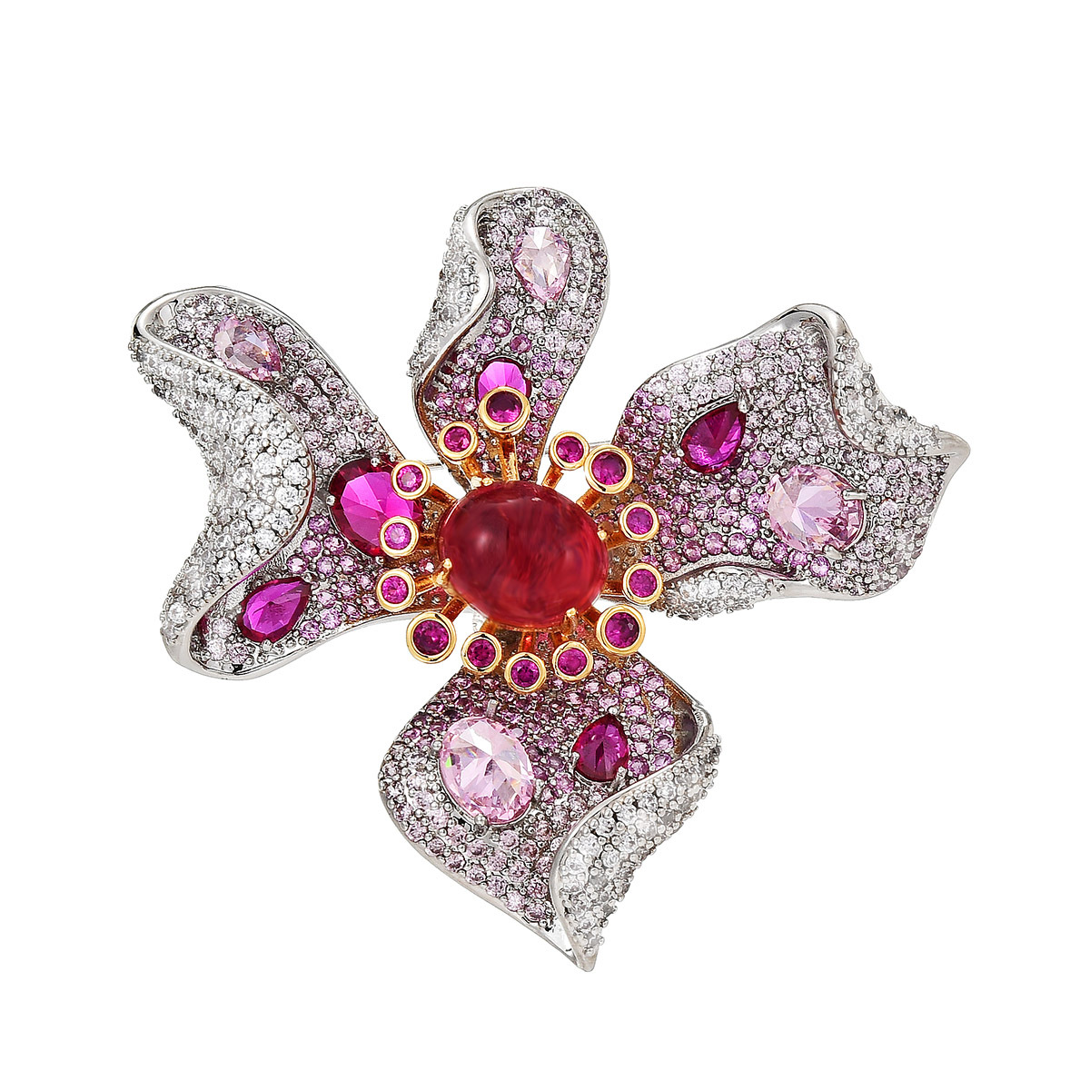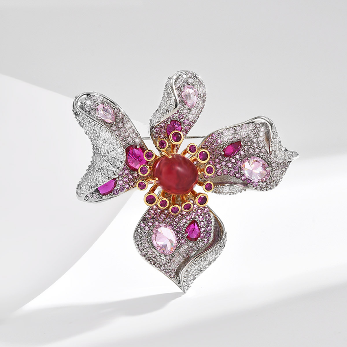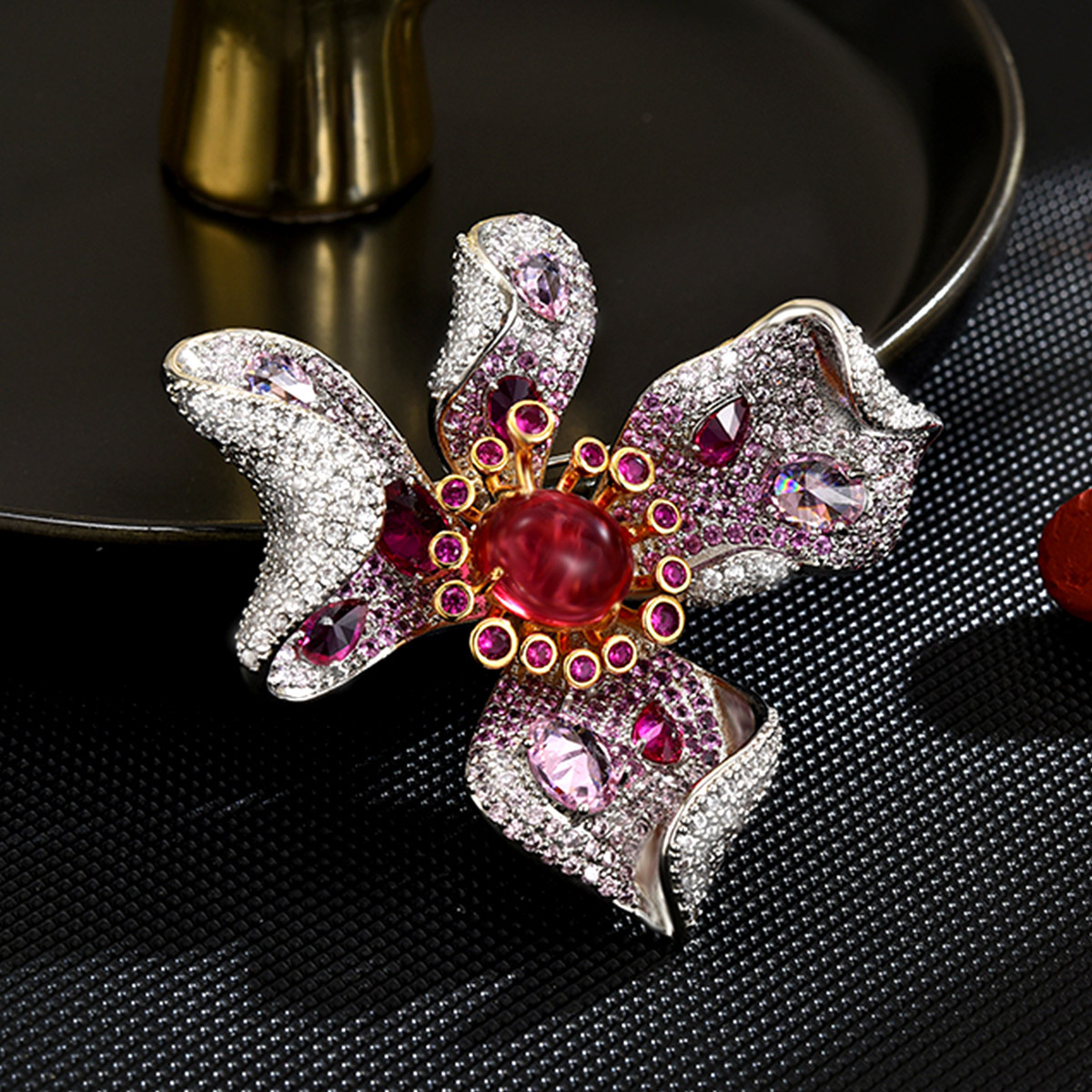 Kubische Zirkonia-Brosche, Messing, Blume, plattiert, Micro pave Zirkonia & facettierte, keine, 50x24x13mm, verkauft von PC