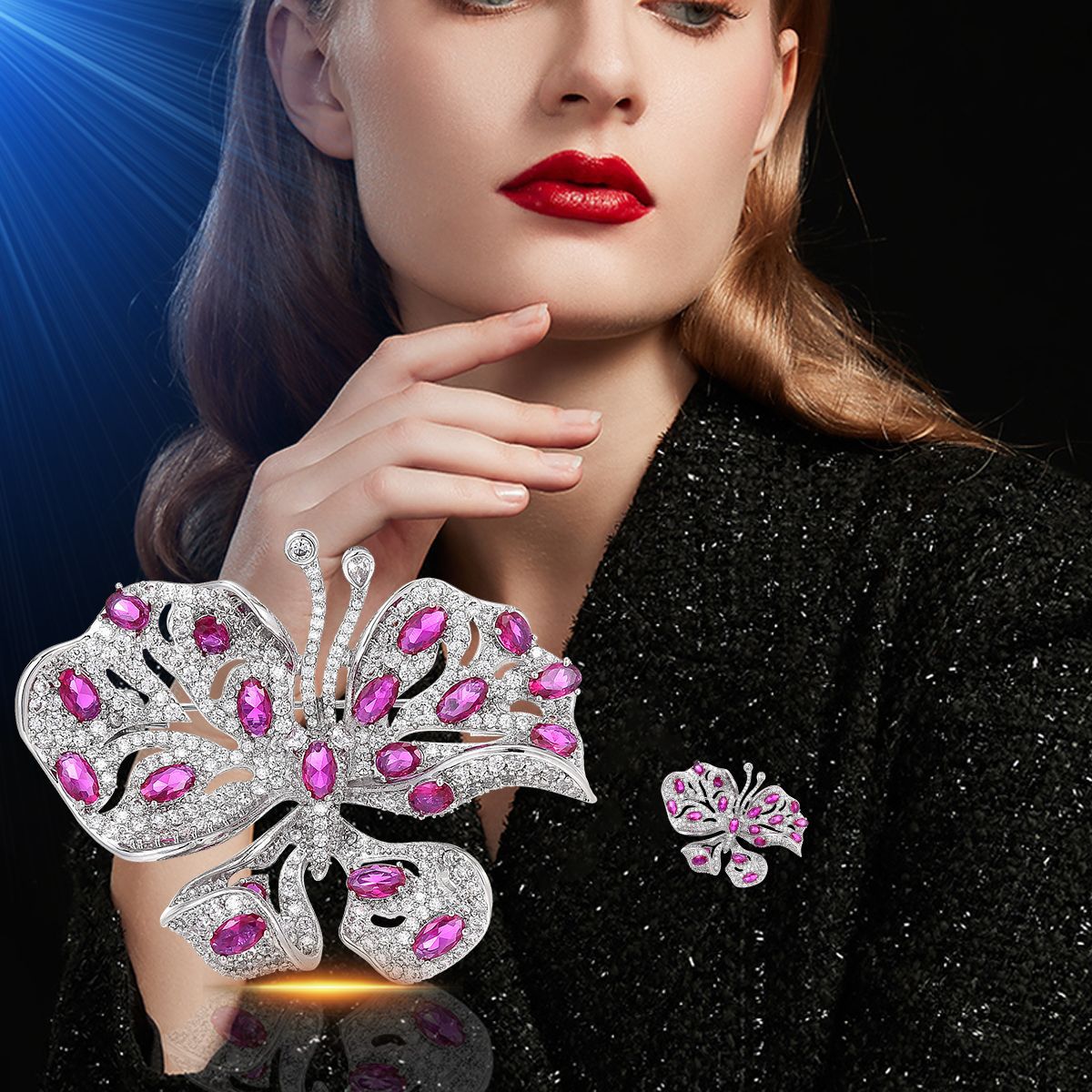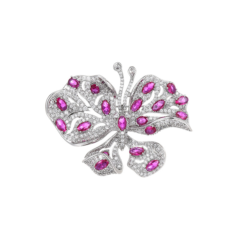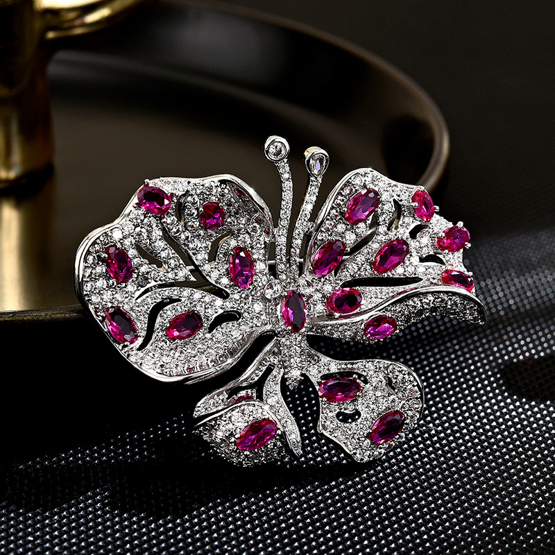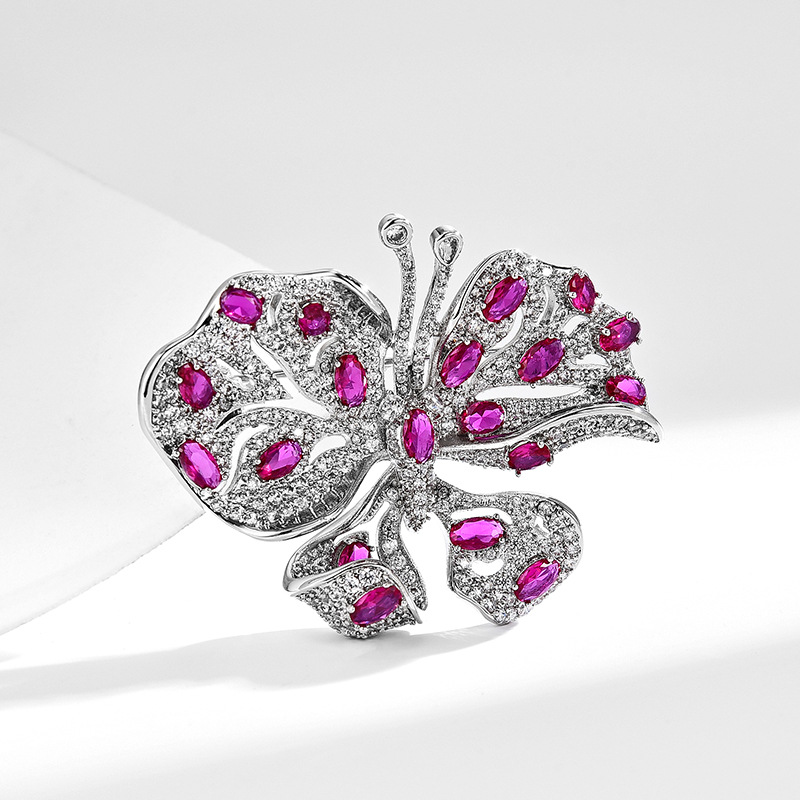Kubische Zirkonia-Brosche, Messing, plattiert, Micro pave Zirkonia & für Frau, Silberfarbe, 38x48mm, verkauft von PC