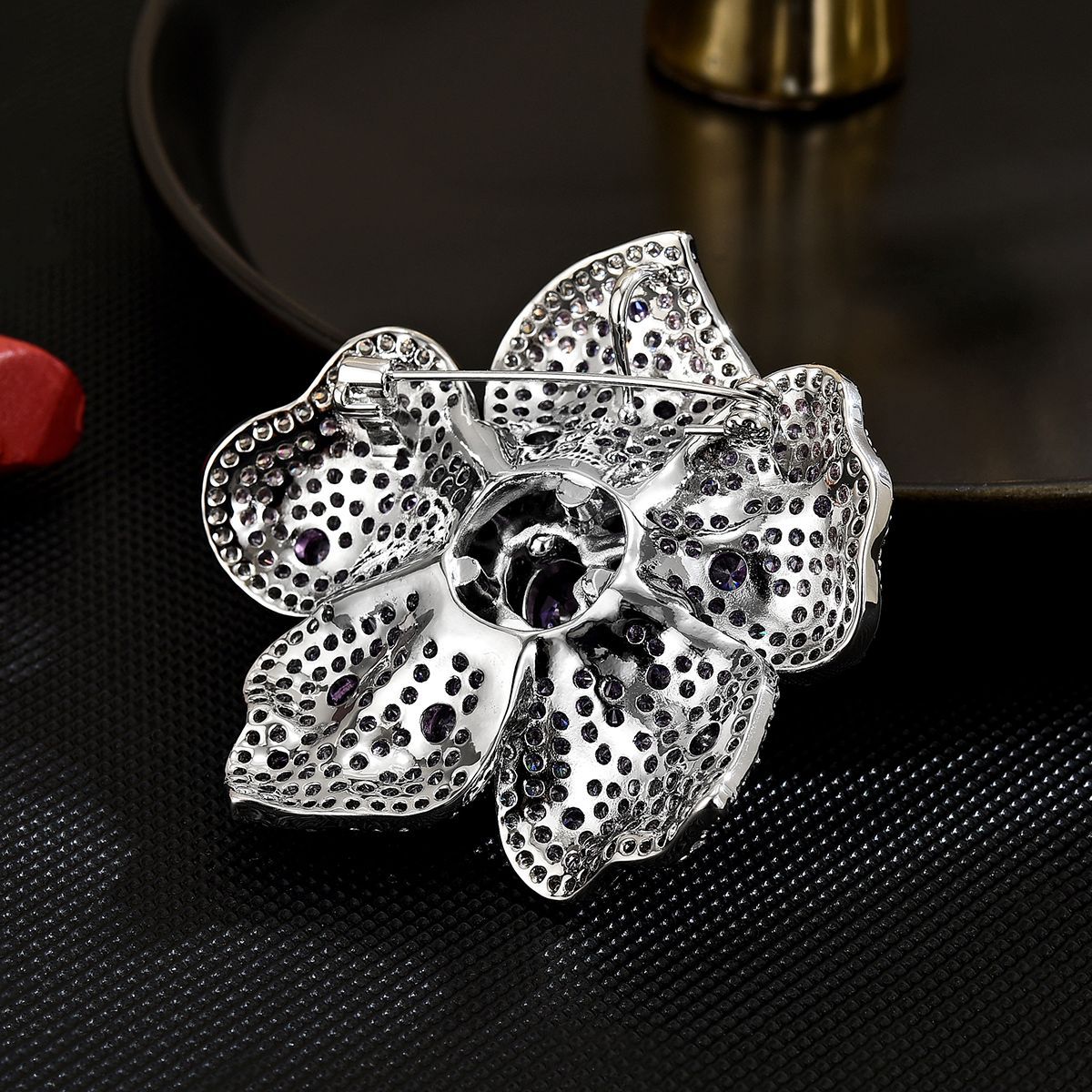 Kubische Zirkonia-Brosche, Messing, Blume, plattiert, Micro pave Zirkonia & facettierte, keine, 50x24x13mm, verkauft von PC