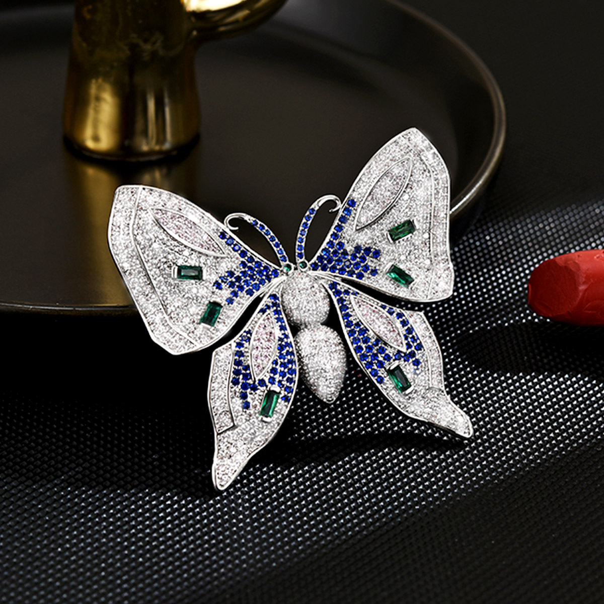 Kubische Zirkonia-Brosche, Messing, Micro pave Zirkonia & für Frau, Silberfarbe, 45x51mm, verkauft von PC