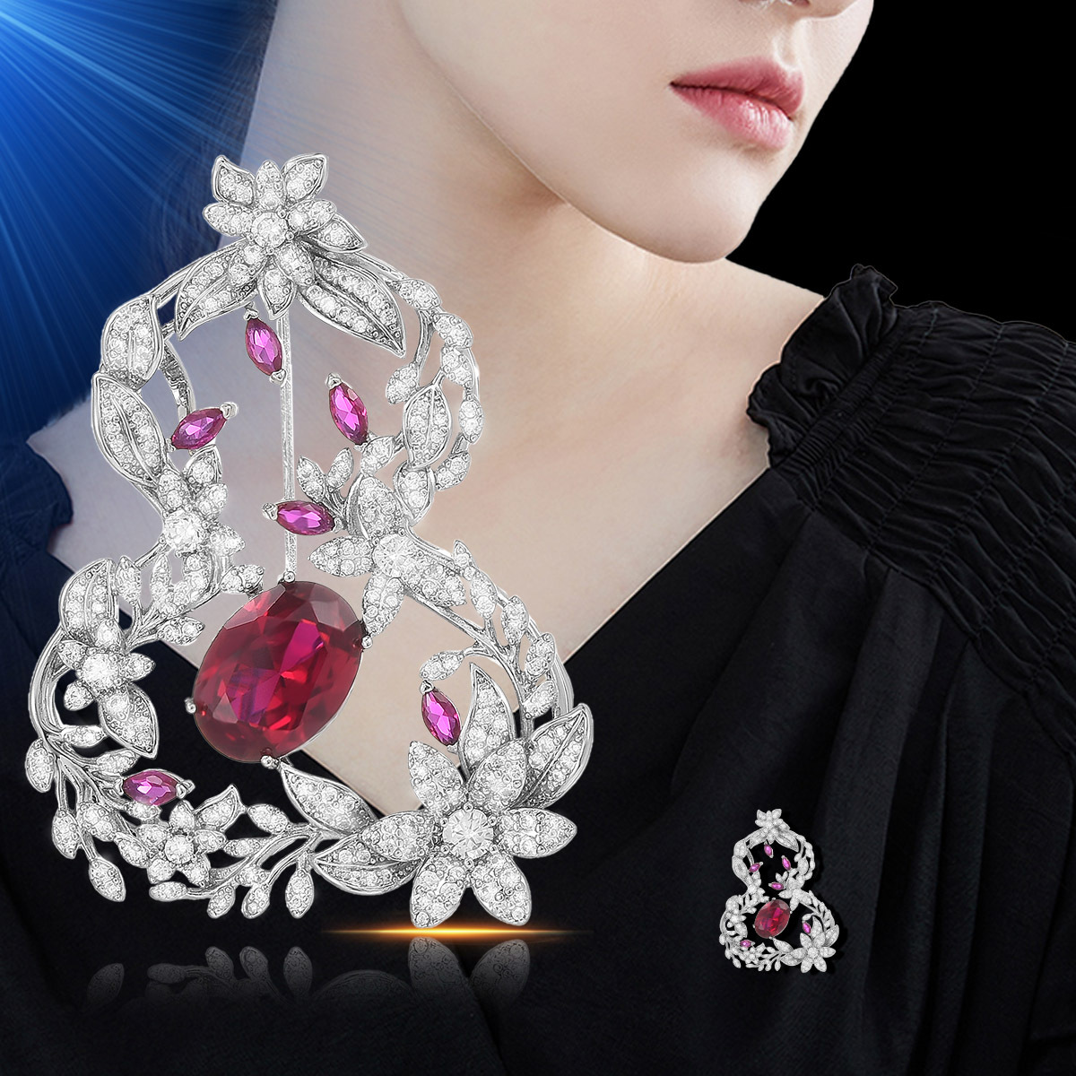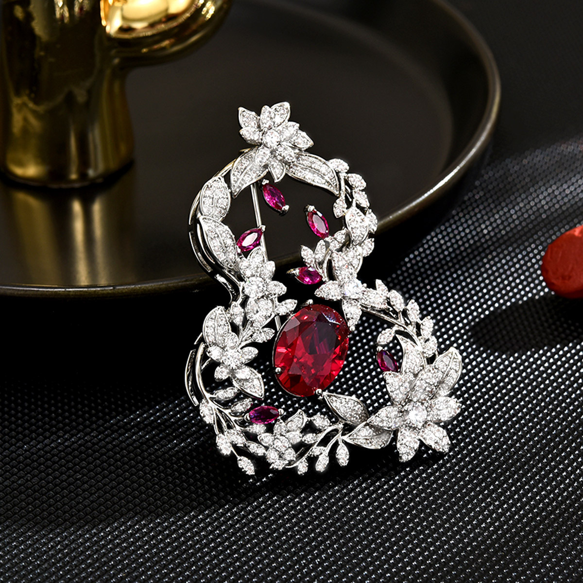 Kubische Zirkonia-Brosche, Messing, Blume, plattiert, Micro pave Zirkonia & facettierte, keine, 50x24x13mm, verkauft von PC