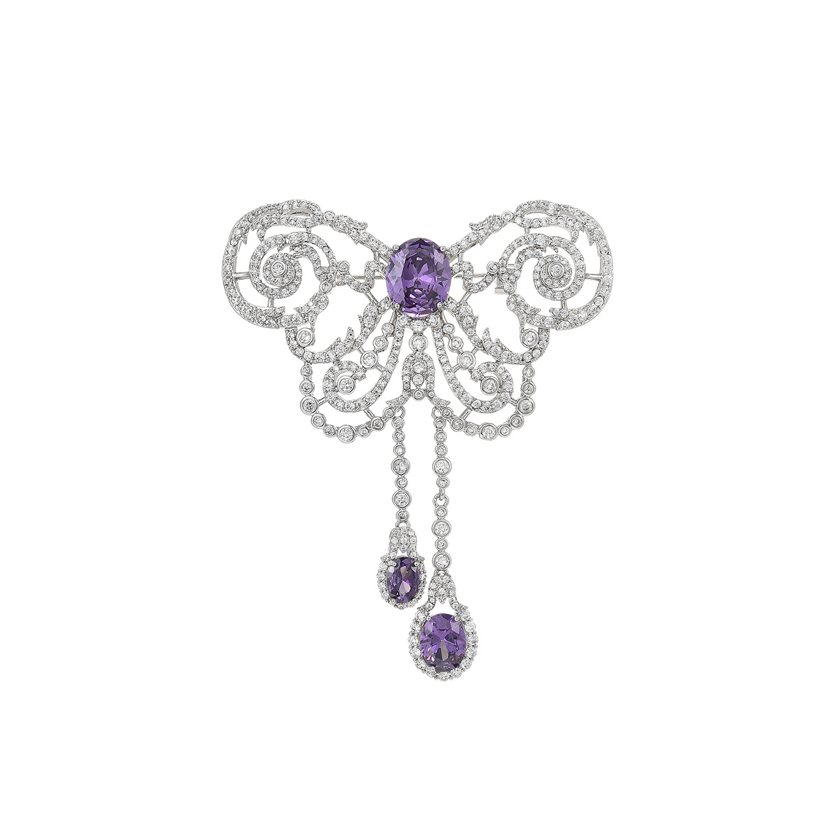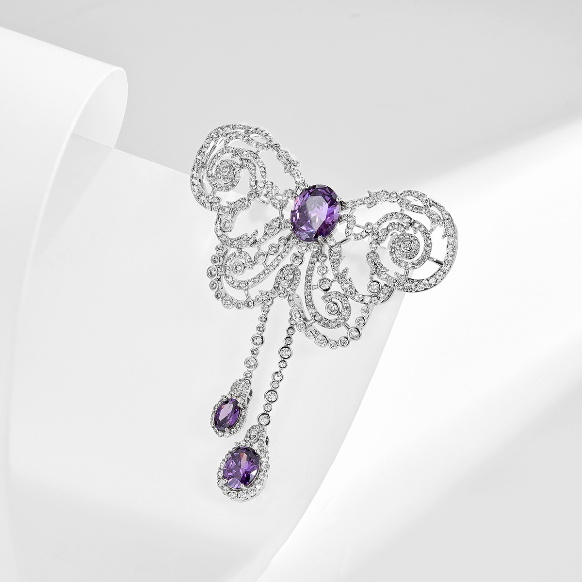 Kubische Zirkonia-Brosche, Messing, Schleife, platiniert, Micro pave Zirkonia, 37x34x15mm, verkauft von PC
