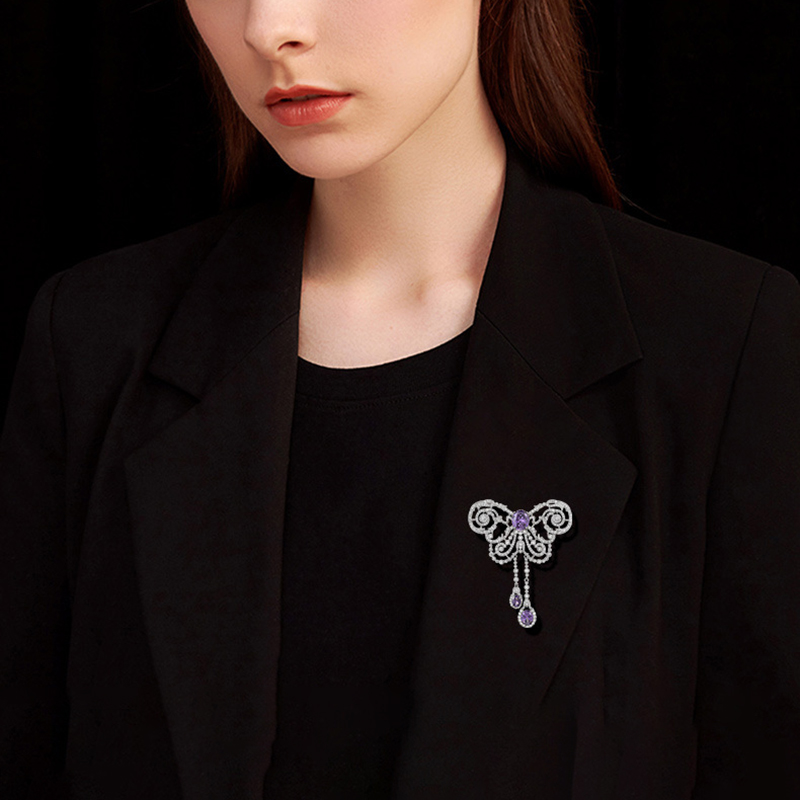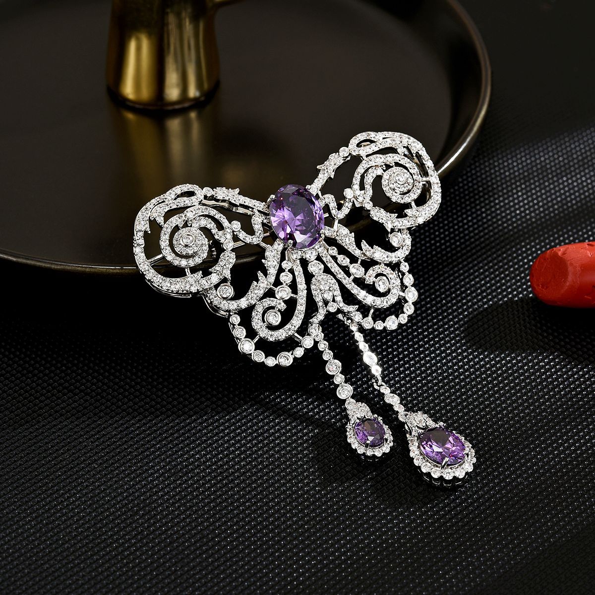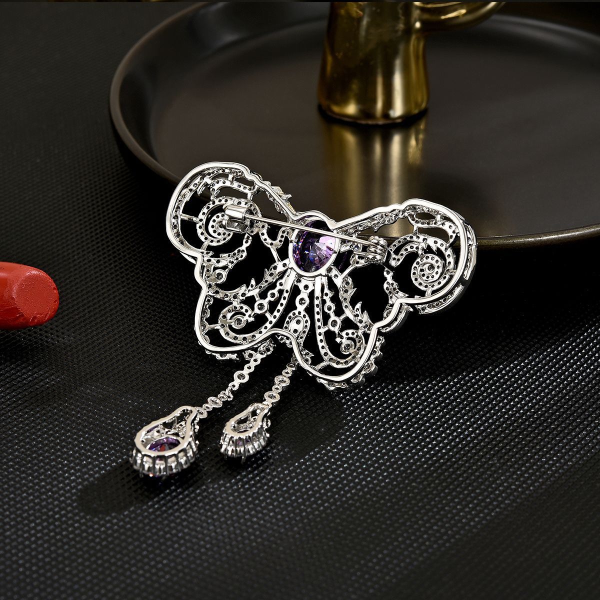 Kubische Zirkonia-Brosche, Messing, plattiert, Micro pave Zirkonia & für Frau, Silberfarbe, 71x59mm, verkauft von PC