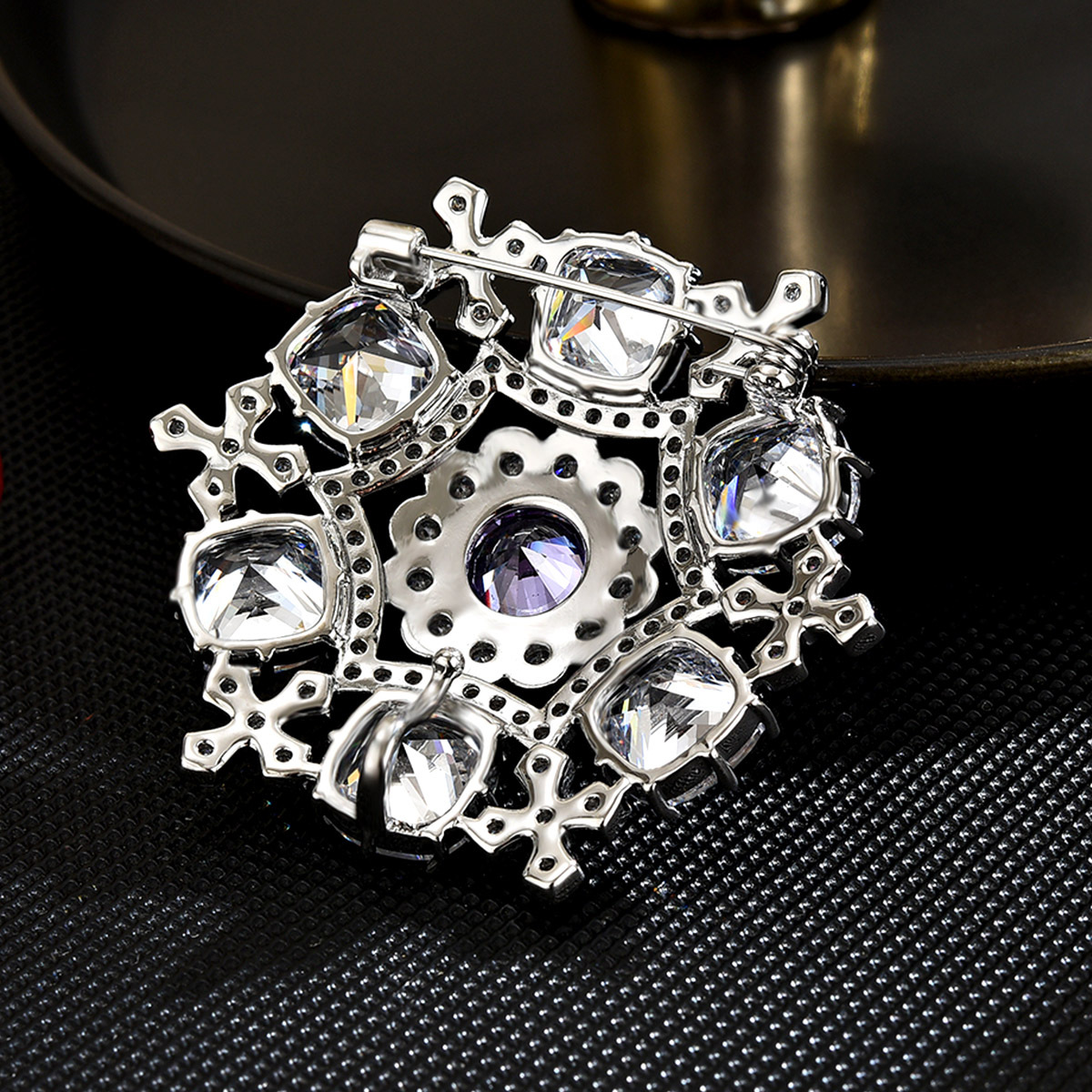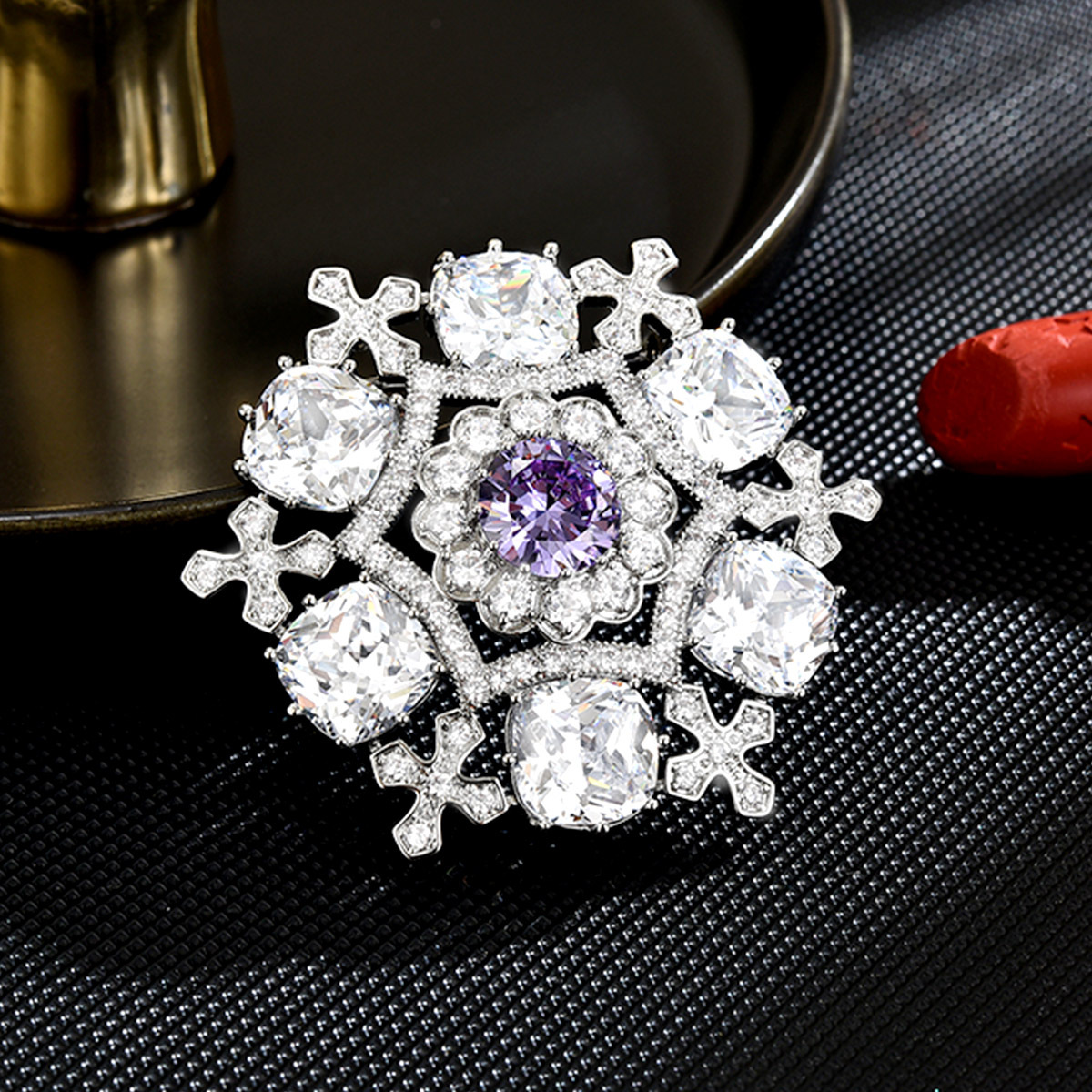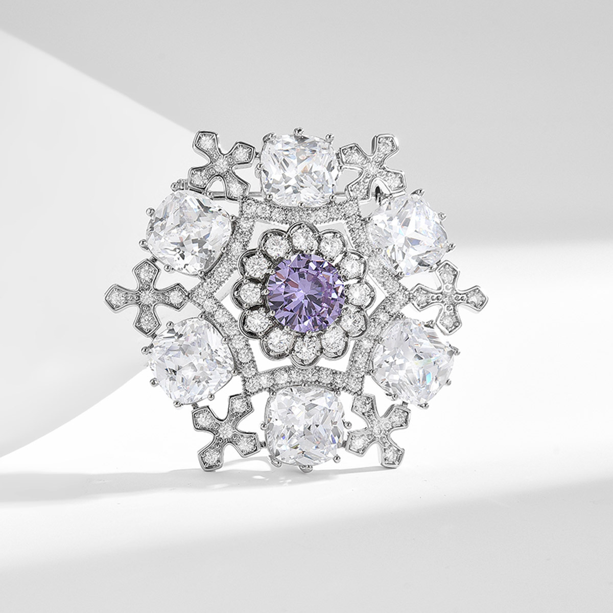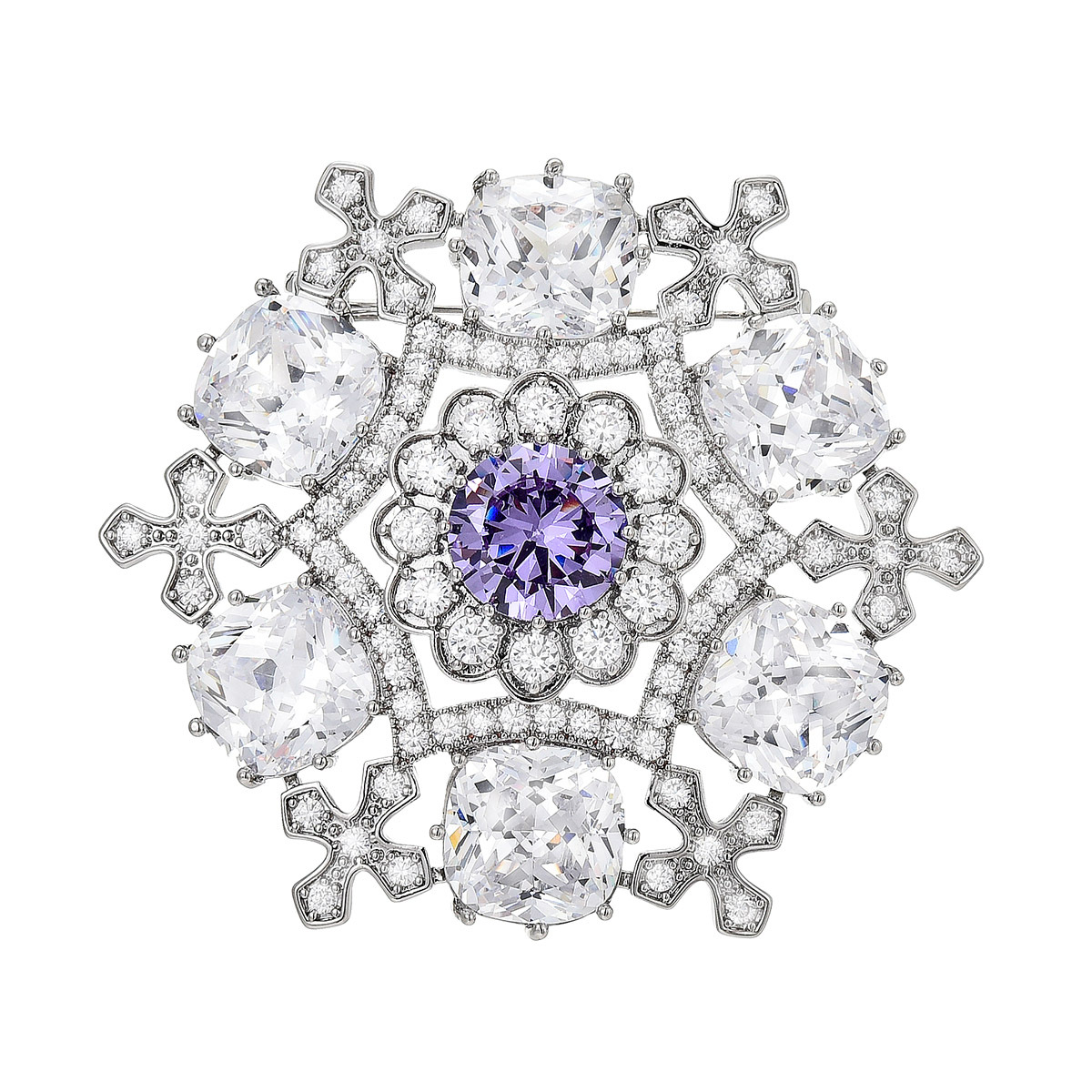 Kubische Zirkonia-Brosche, Messing, plattiert, Micro pave Zirkonia & für Frau, Silberfarbe, 43x43mm, verkauft von PC