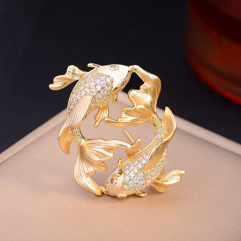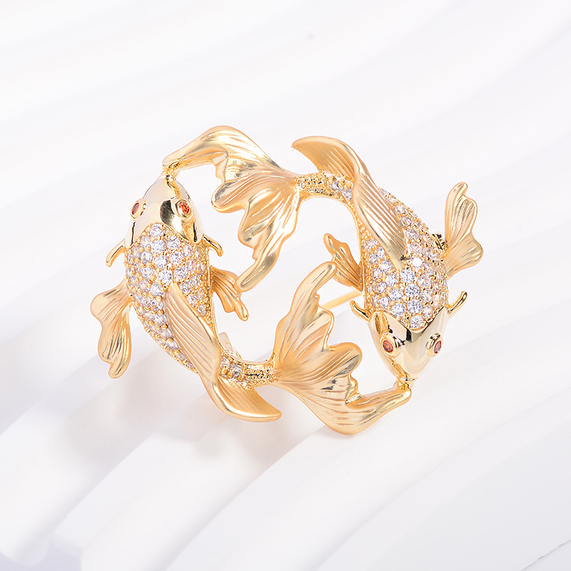 Kubische Zirkonia-Brosche, Messing, Fisch, goldfarben plattiert, Modeschmuck & Micro pave Zirkonia, goldfarben, 38x36mm, verkauft von PC