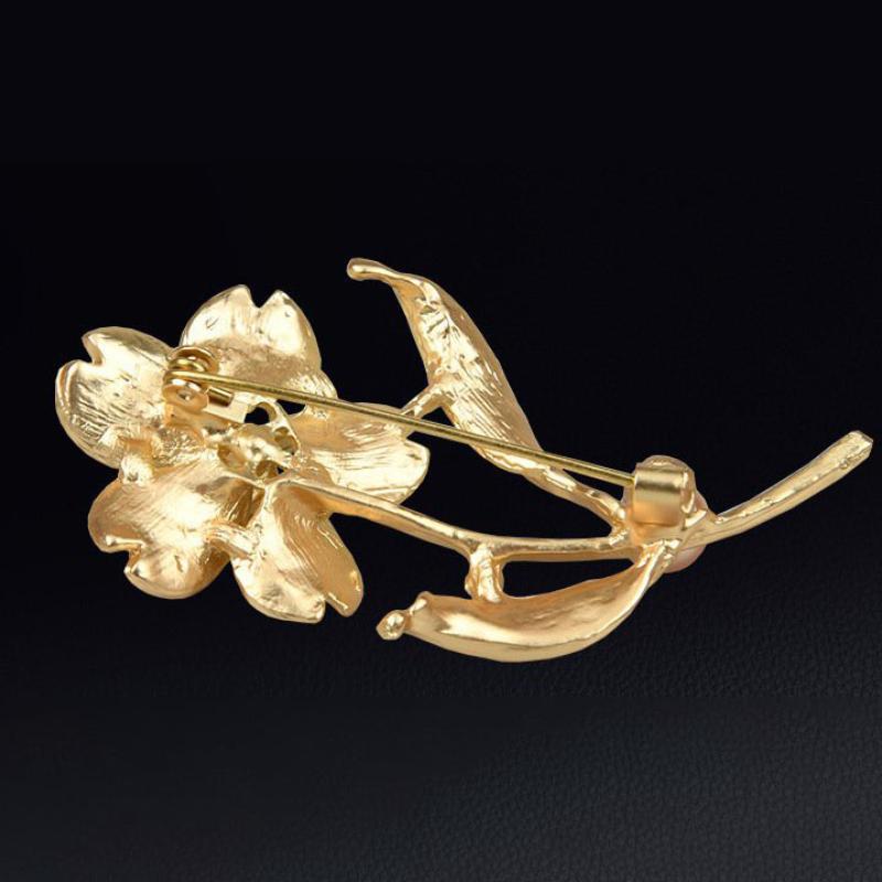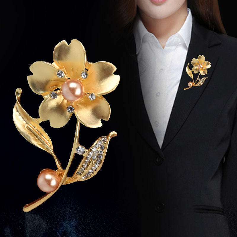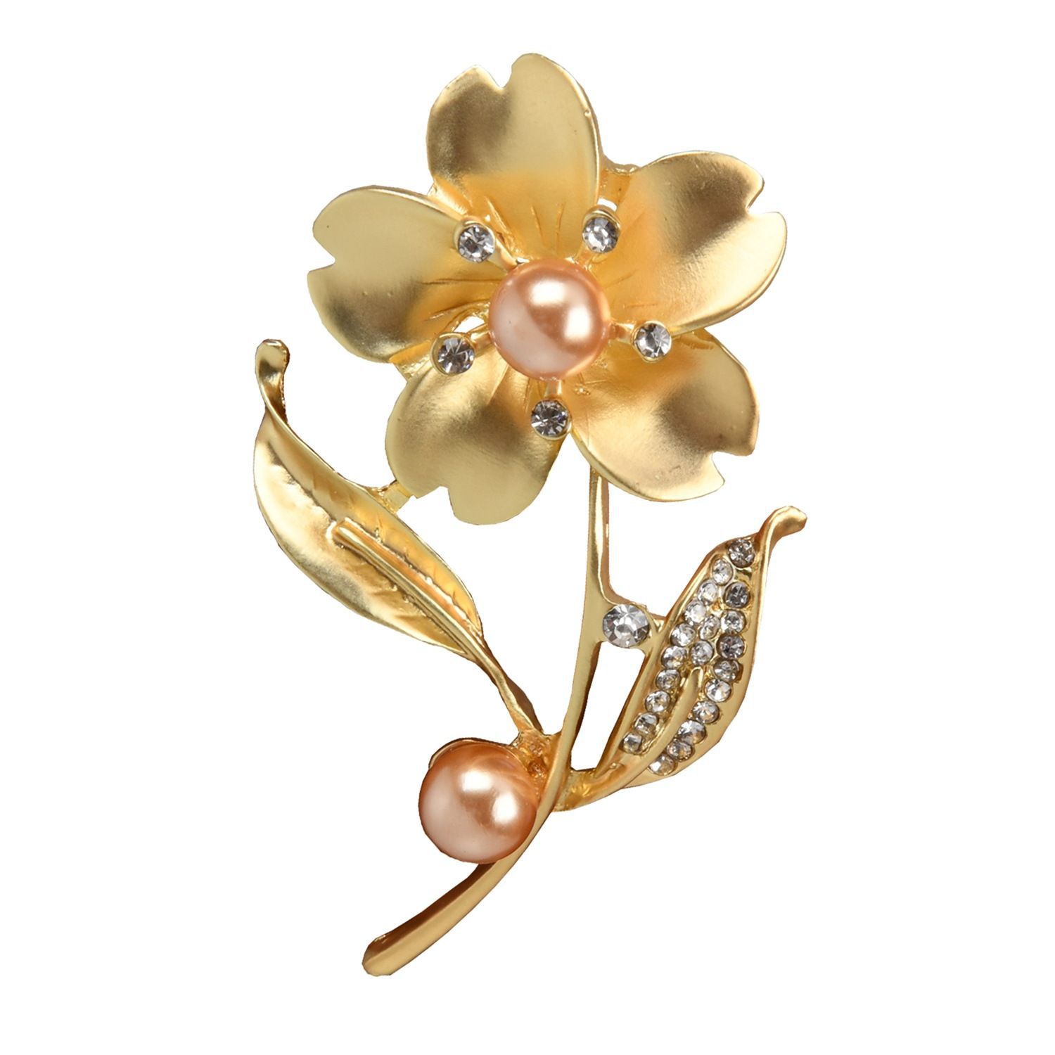 Strass Zink Legierung Brosche, Zinklegierung, mit Kunststoff Perlen, Blume, für Frau & mit Strass & hohl, 65x32mm, verkauft von PC