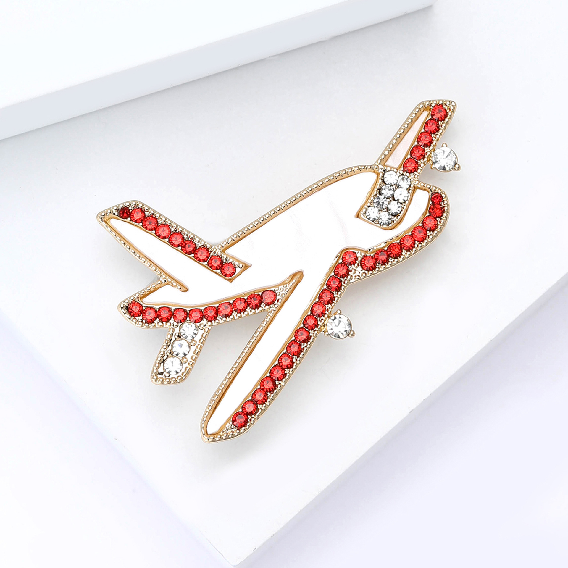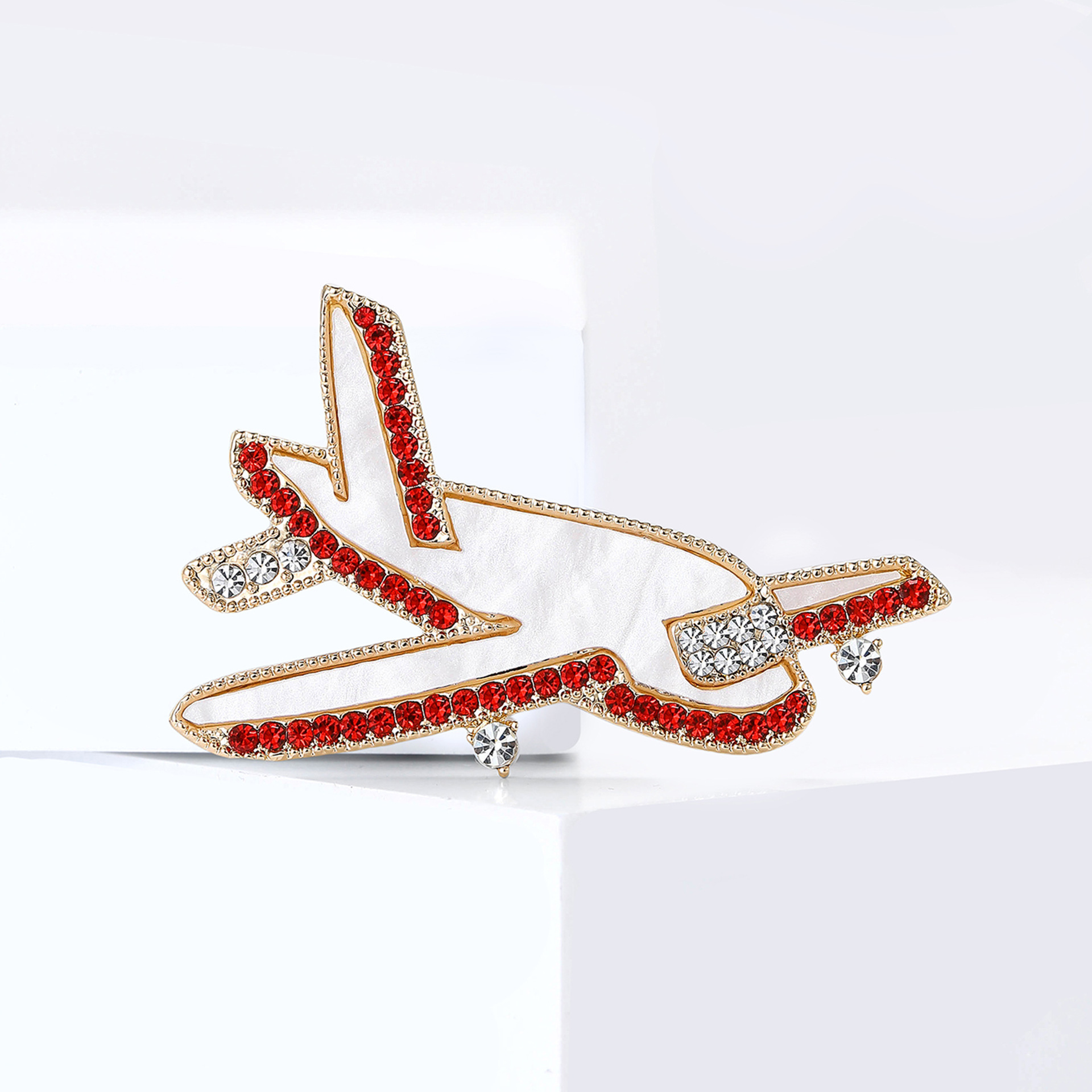 Strass Zink Legierung Brosche, Zinklegierung, mit Muschel, Flugzeug, goldfarben plattiert, für Frau & mit Strass, rot, verkauft von PC