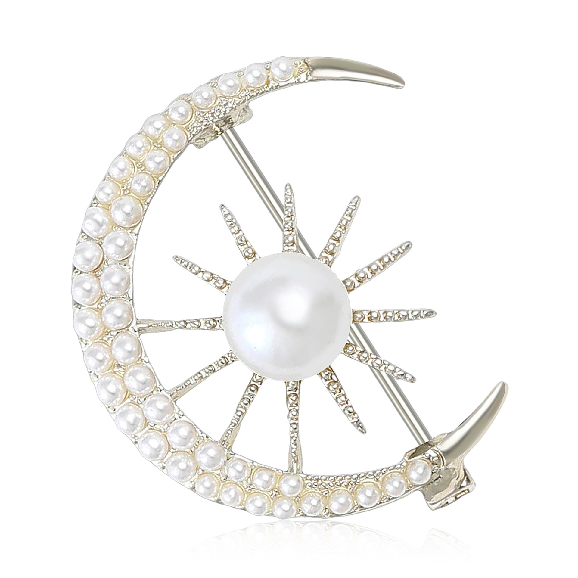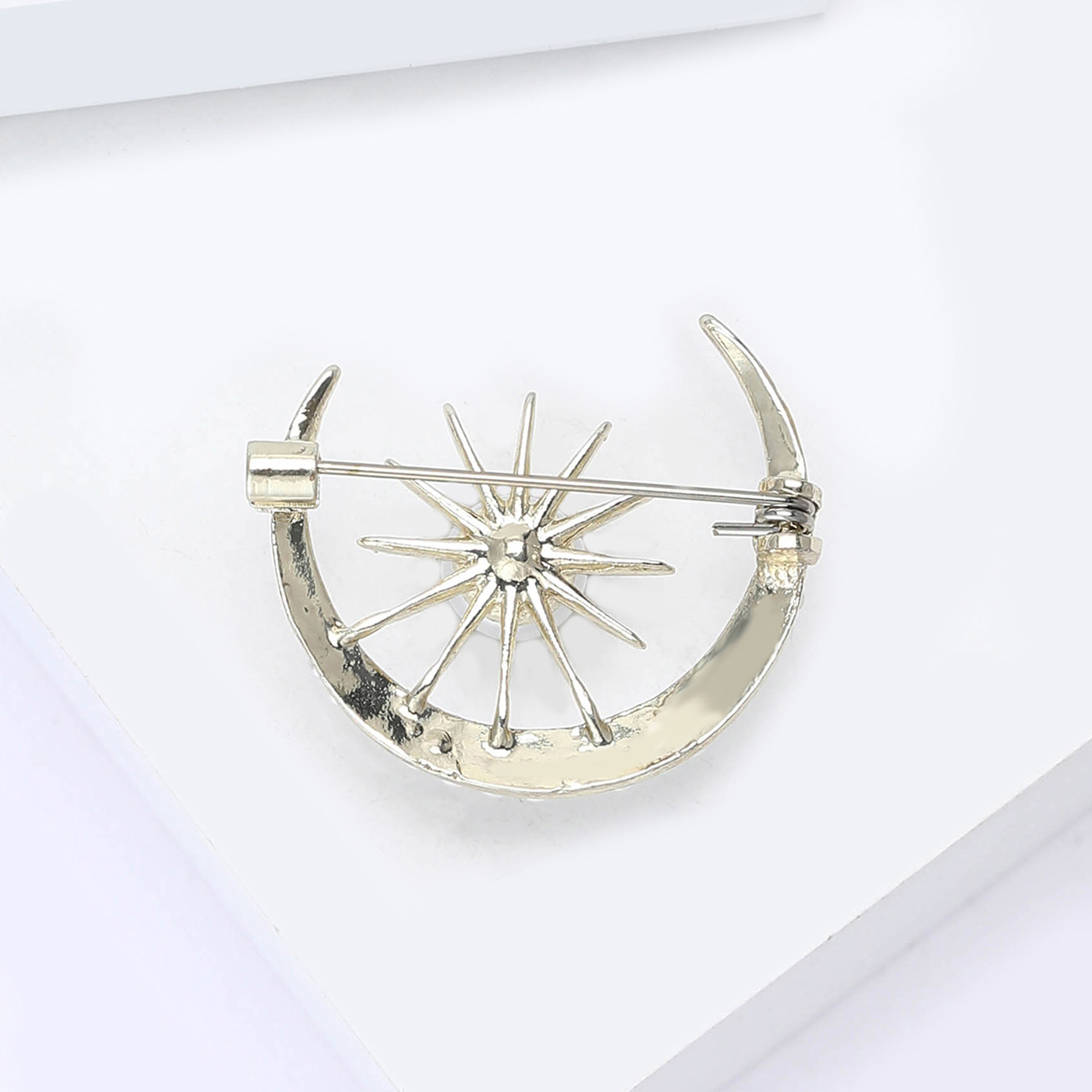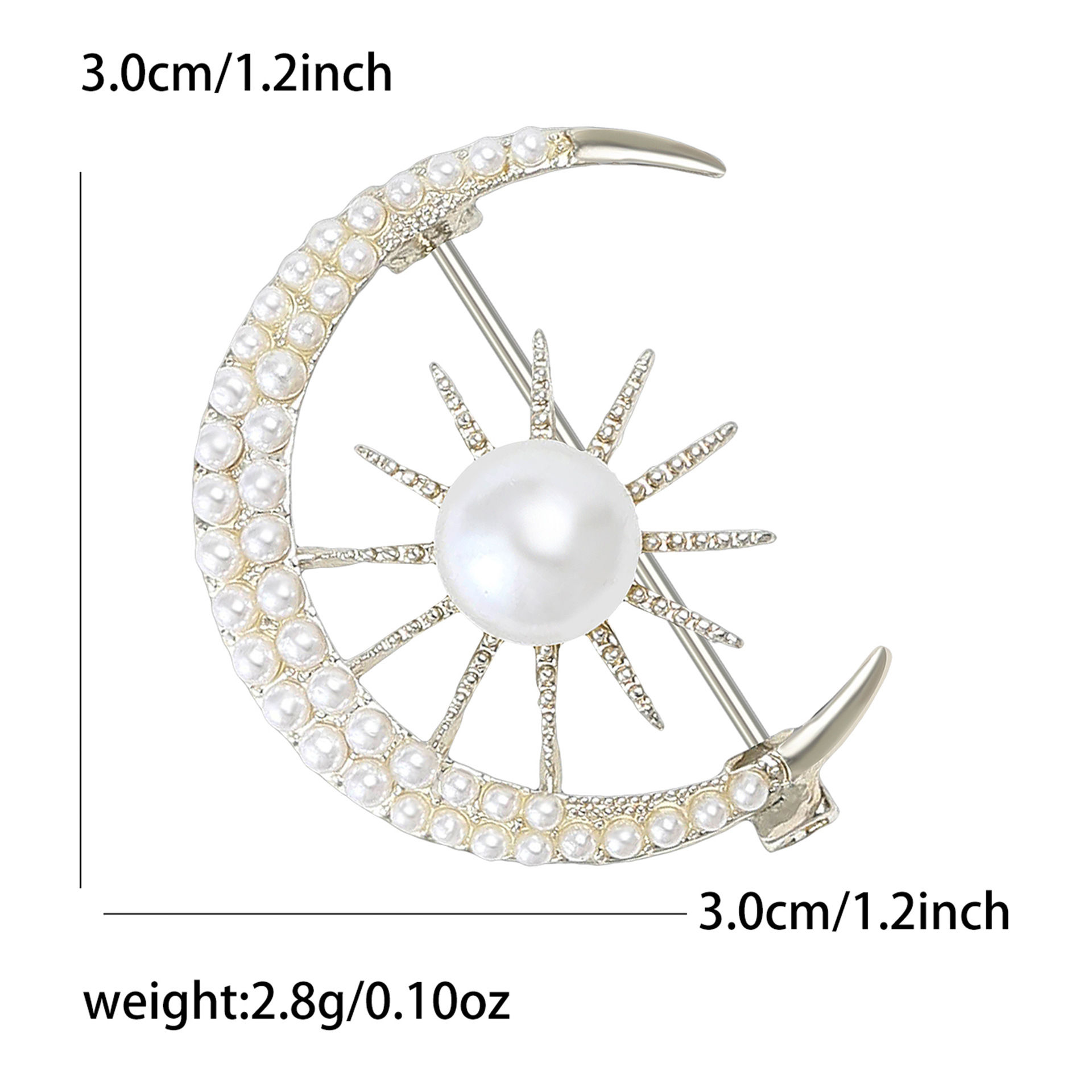 Strass Zink Legierung Brosche, Zinklegierung, mit Kunststoff Perlen, Mond, goldfarben plattiert, für Frau & mit Strass, verkauft von PC