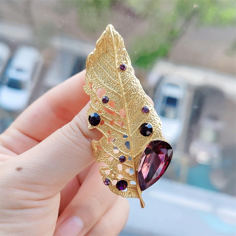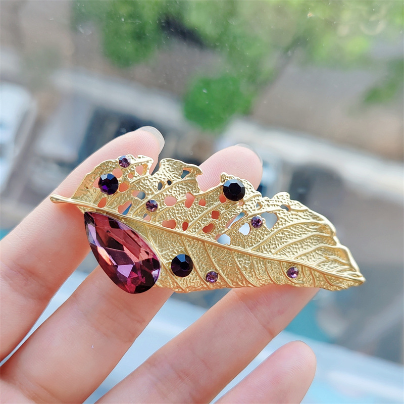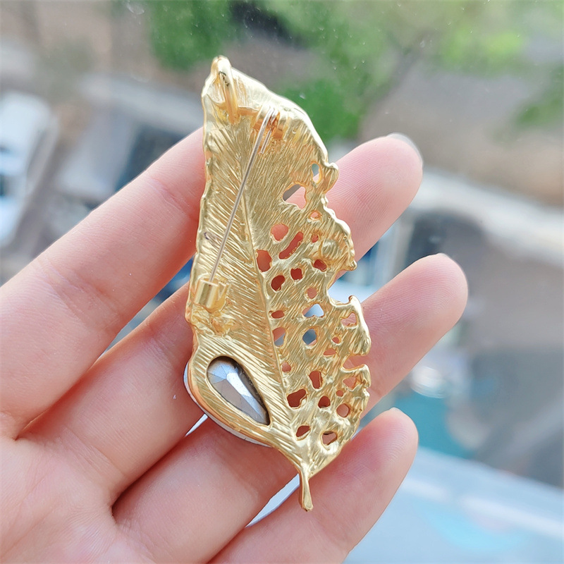 Strass Zink Legierung Brosche, Zinklegierung, mit Strass, Blatt, plattiert, Modeschmuck & für Frau & hohl, antik goldfarben, 70x30x20mm, verkauft von PC